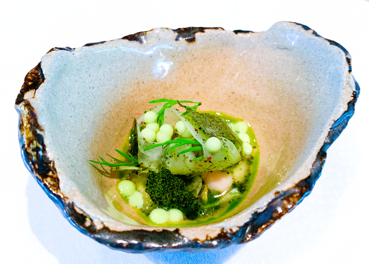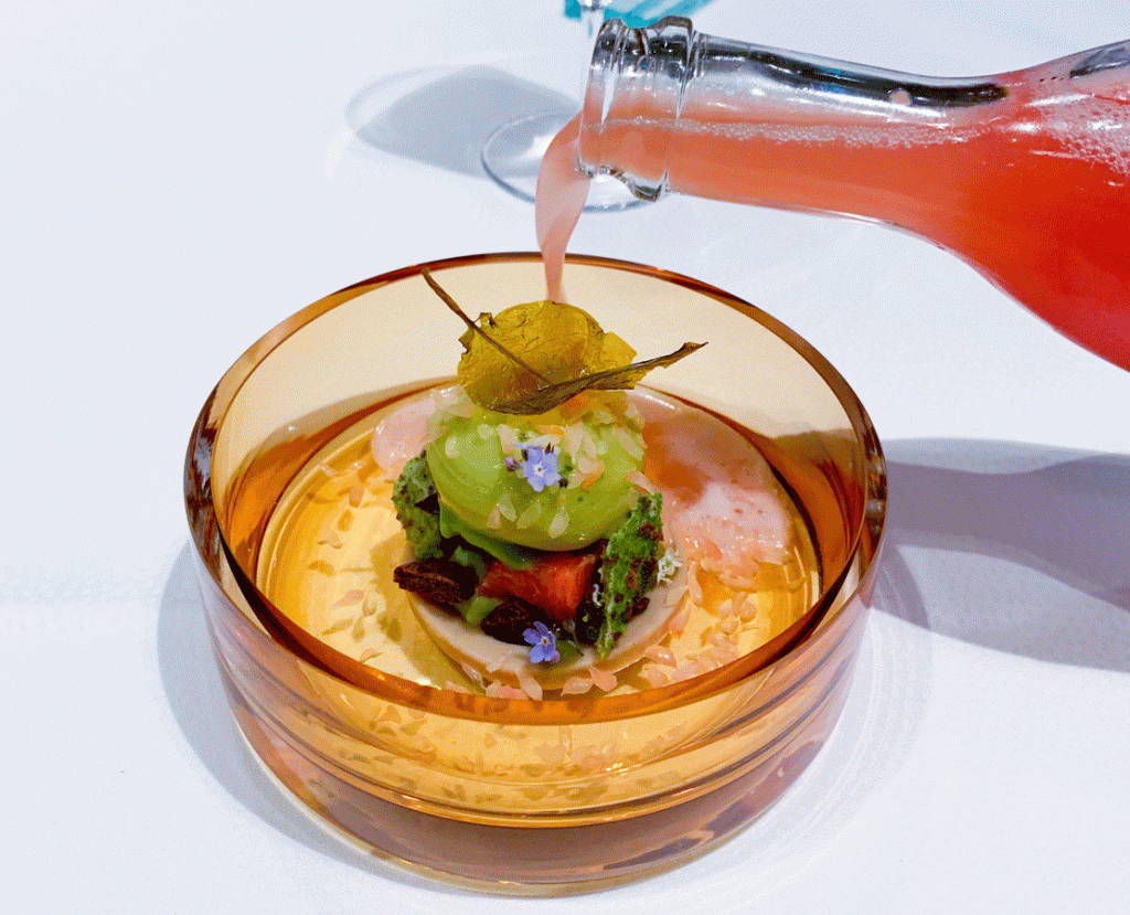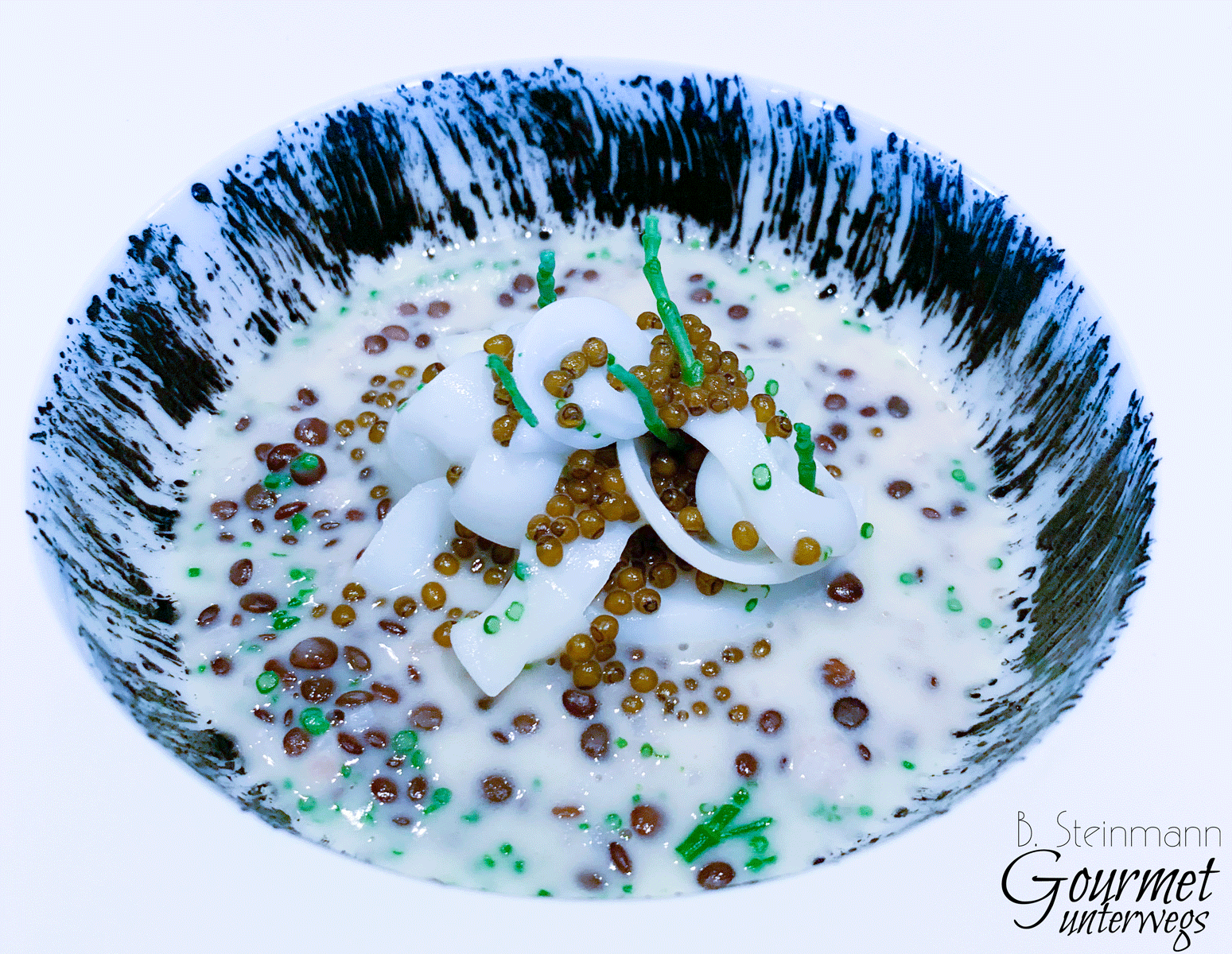 Aromatisch großartig und texturell vielschichtig, würde ich dieses Gericht als typisch für das Aqua bezeichnen. Erbsenschaum, Spitzmorcheln und krosse Hühnerhaut, runden ein großartiges geschmackliches Erlebnis ab.
