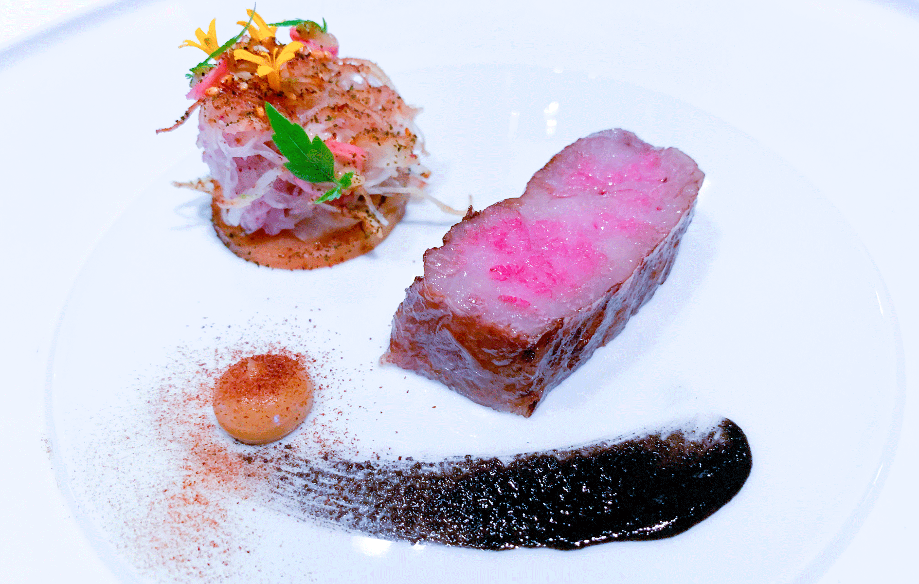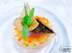 Elverfeld verwendet gerne asiatische Komponenten in seinen Kreationen, ohne jedoch den Anspruch zu haben, asiatisch zu kochen. Entscheidend ist, ob die Produkte zusammenpassen. Bewährtes findet man immer wieder, beispielsweise die karamellisierte Olive oder das Champagner Cremesorbet „Edition Ruinart Rosé“.