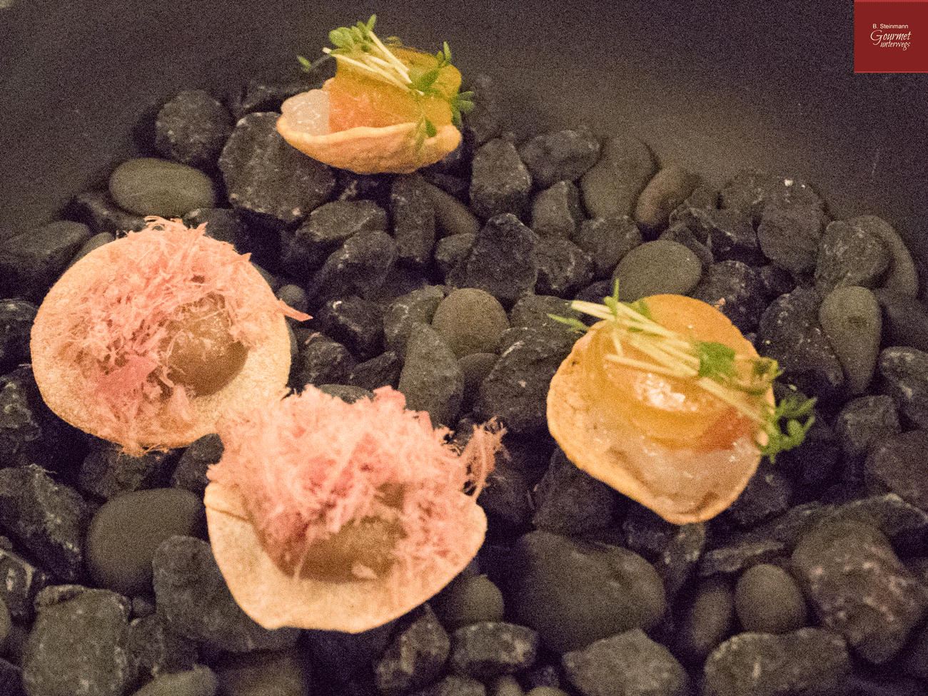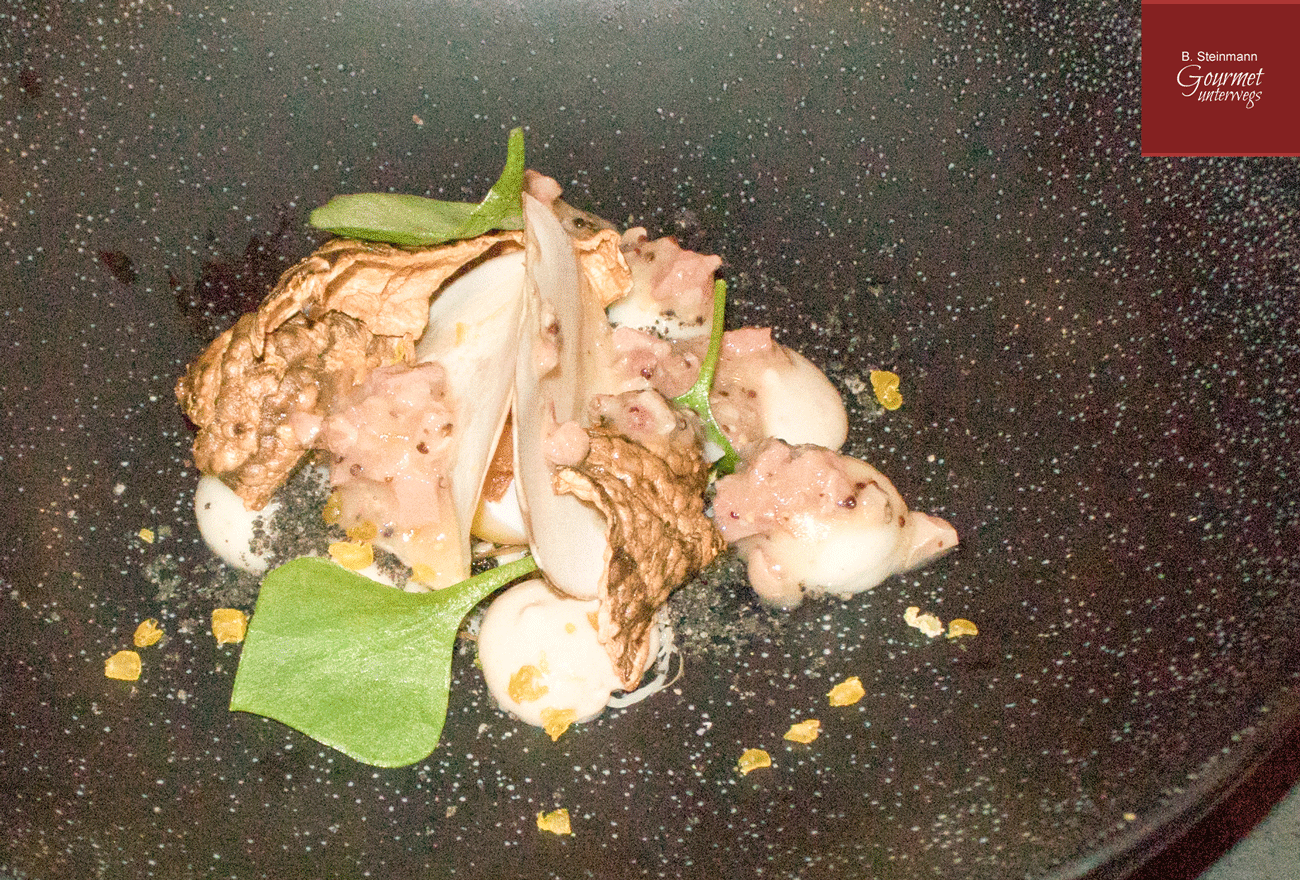 Geschmacklich ist der Gang dagegen großartig gelungen. Der Topinamburcracker ergänzt das Ganze durch seine spröde und knackige Textur.