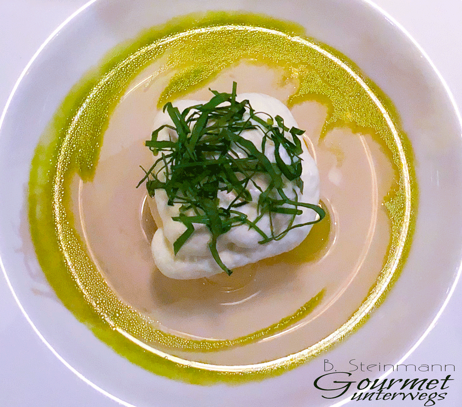 Man muss sich nicht verbiegen um dem Essen eine französische Stilistik zu attestieren. Wer möchte, darf Bezüge zu Tim Raue suchen und meinetwegen auch in unterschiedlichem Maße finden. Mit Texturen, Akkorden und anderen Begriffen, die in der gehobenen Restaurantkritik so gerne bemüht werden, möchte ich hier niemanden langweilen.