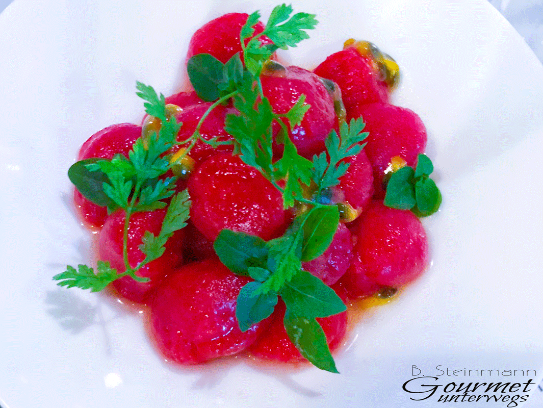 Zwar hat man ständig mit irgendwelchen Schärfenoten zu tun, doch das wars dann auch schon. Alles in allem erlebten wir eine moderne Brasserieküche auf einem sehr ansprechendem Niveau.