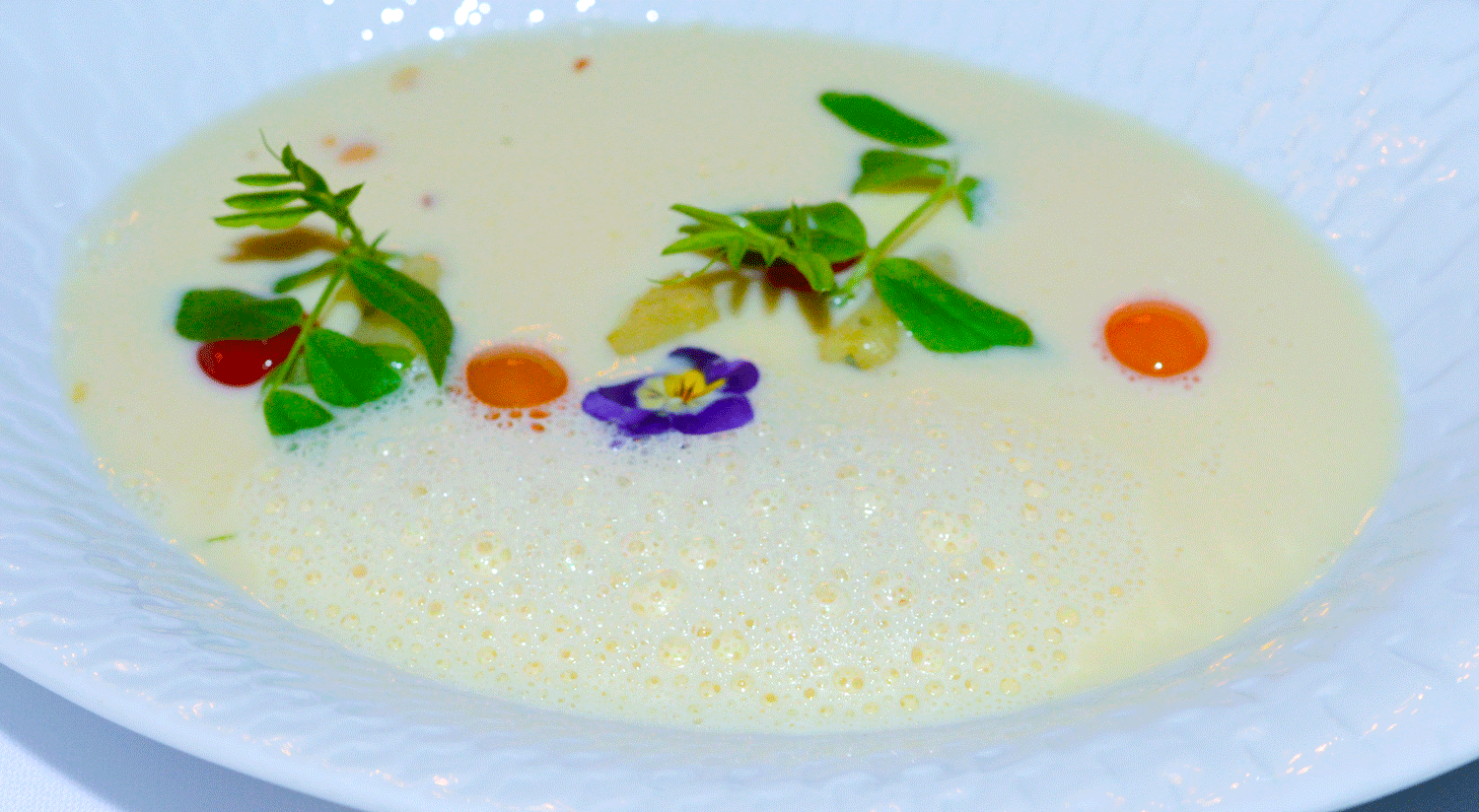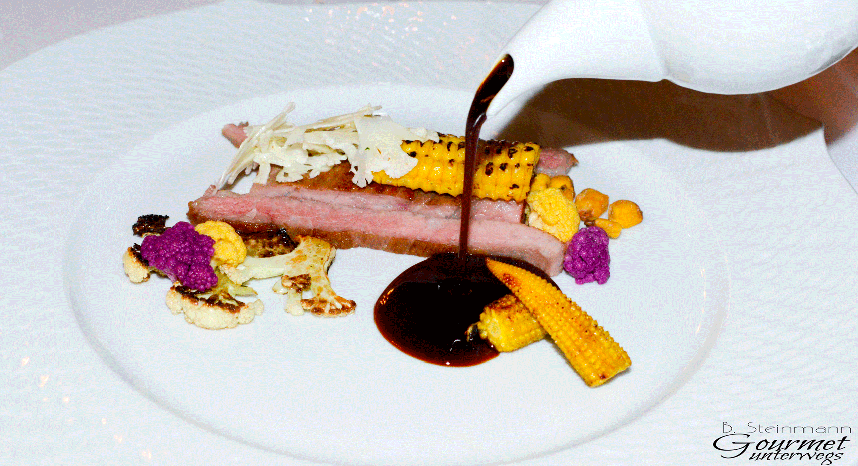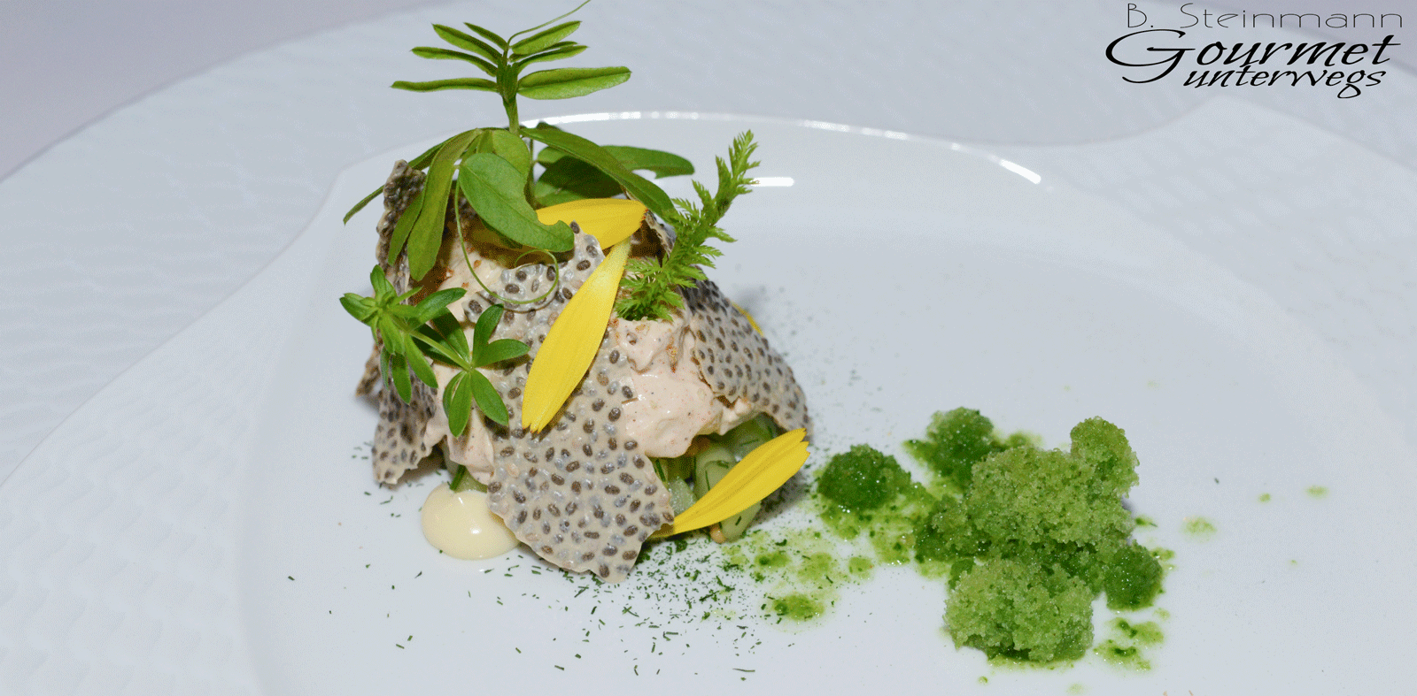 Eine sehr gefällige Kreation, die schon optisch einen tollen Eindruck hinterlässt. Die „feminine Anrichteweise“ haben wir dem vorangegangenen Interview mit dem Küchenchef bereits ausreichend thematisiert.