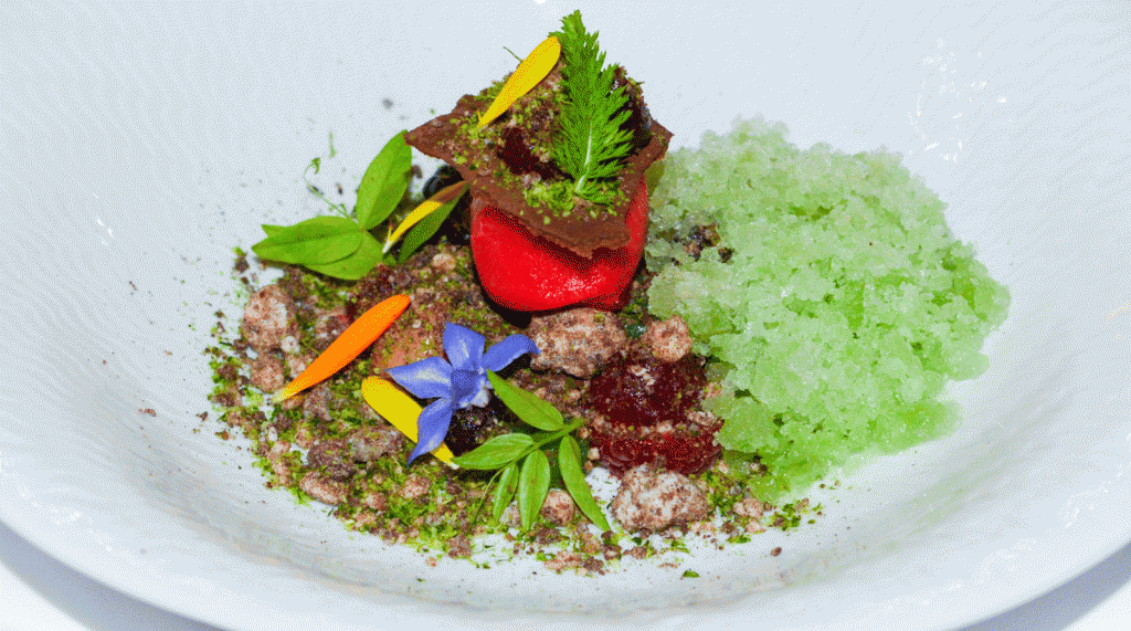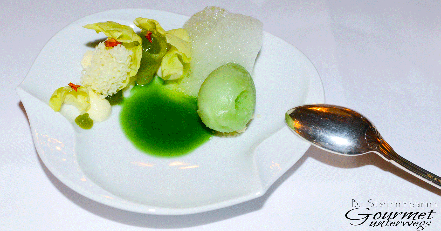 Fast zwangsläufig muss man dabei an Christian Hümbs denken, den wir damals noch im Restaurant Haerlin im Fairmont Hotel Vier Jahreszeiten in Hamburg erleben konnten und der auf fast geniale Weise Gemüse in Desserts integriert hatte.