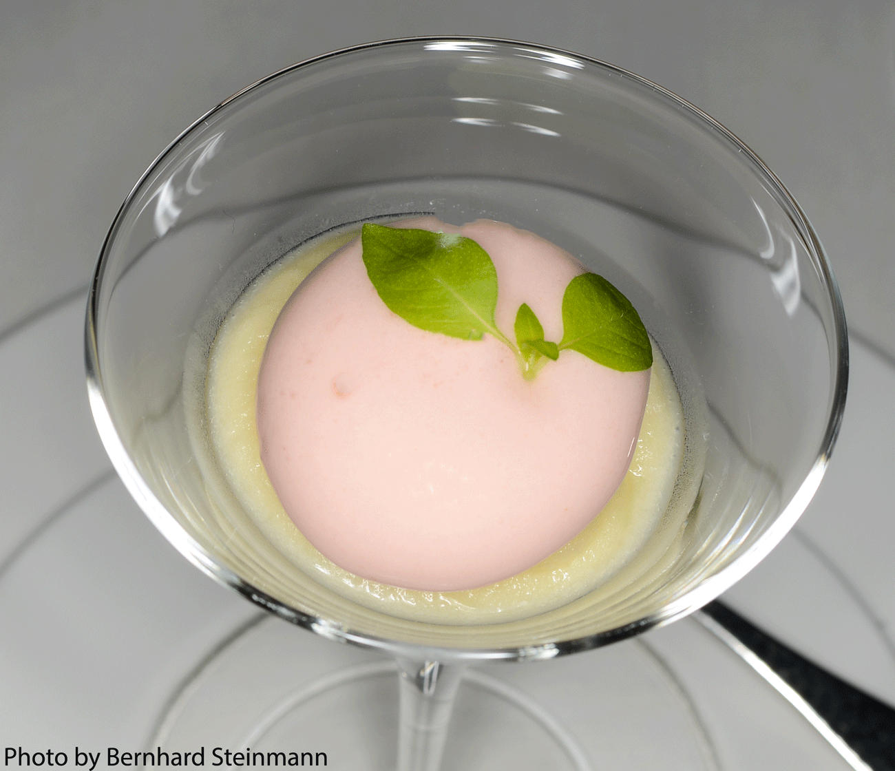 Himbeeren und Minze rücken intensiv in den Vordergrund. Mit leichten Säurenoten wird das Menü abgeschlossen.