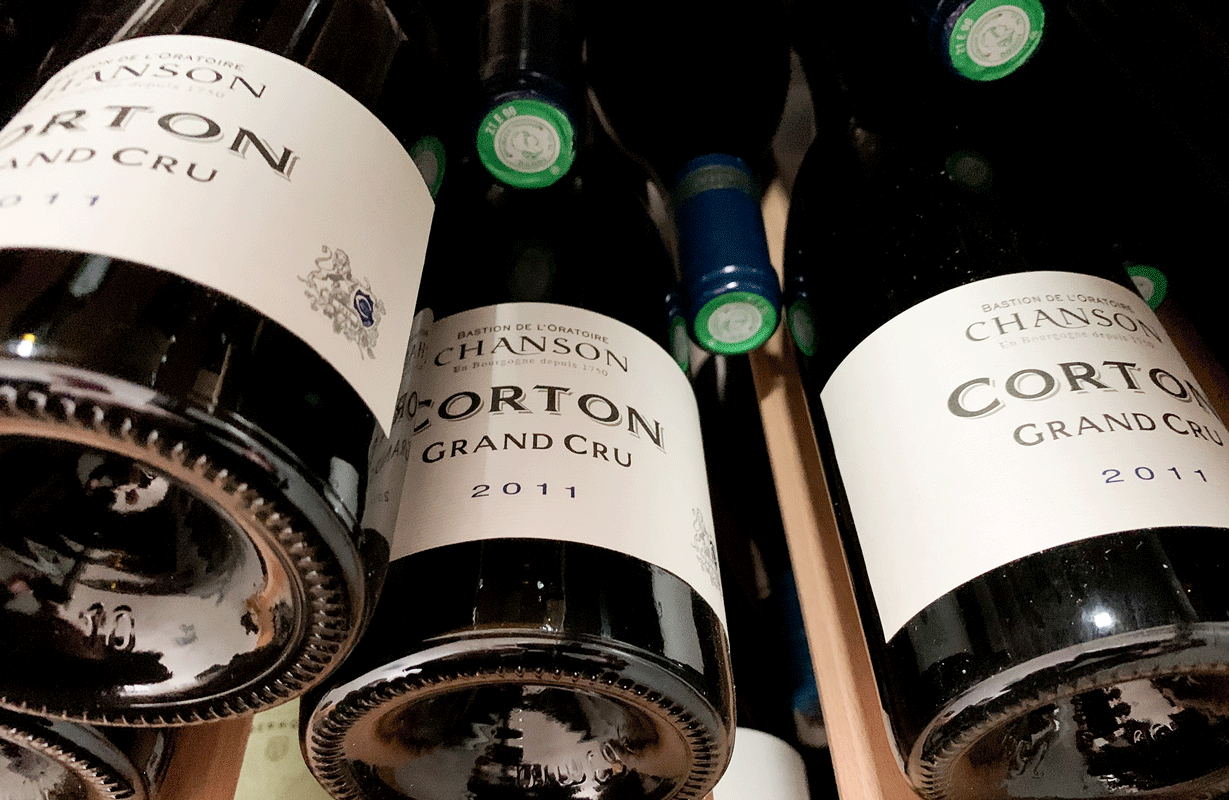 Aus dem reichhaltigen Sortiment der Chanson-Weine habe ich mir den 2011er Corton, Grand Cru ausgesucht. Die Parzelle liegt am mittleren Hang des berühmten Corton Hügels über den Dörfern von Ladoix Serrigny und Aloxe Corton und ist nach Osten orientiert. 16 Monate dauert der Ausbau im Eichenfass. Die Farbe ist rubinrot, der Duft floral. Die Aromen sind intensiv würzig und der Geschmack von Herbstfrüchten dominiert. Bei noch erkennbaren Noten von Lakritz, wie ich finde, schwört meine Frau auf die Wahrnehmung von Vanille. Wer mag da widersprechen.