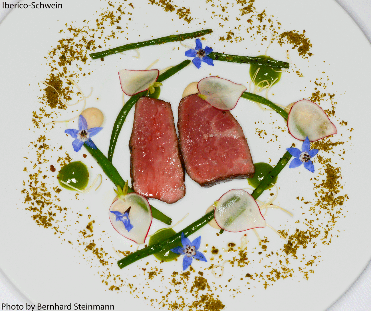 Das fein marmorierte Schulterstück hat eine deutliche „Rinderoptik“. Die Marmorierung erinnert stark an das Wagyurind. Nicht nur deshalb ist es bei spanischen Avantgardeköchen so beliebt.