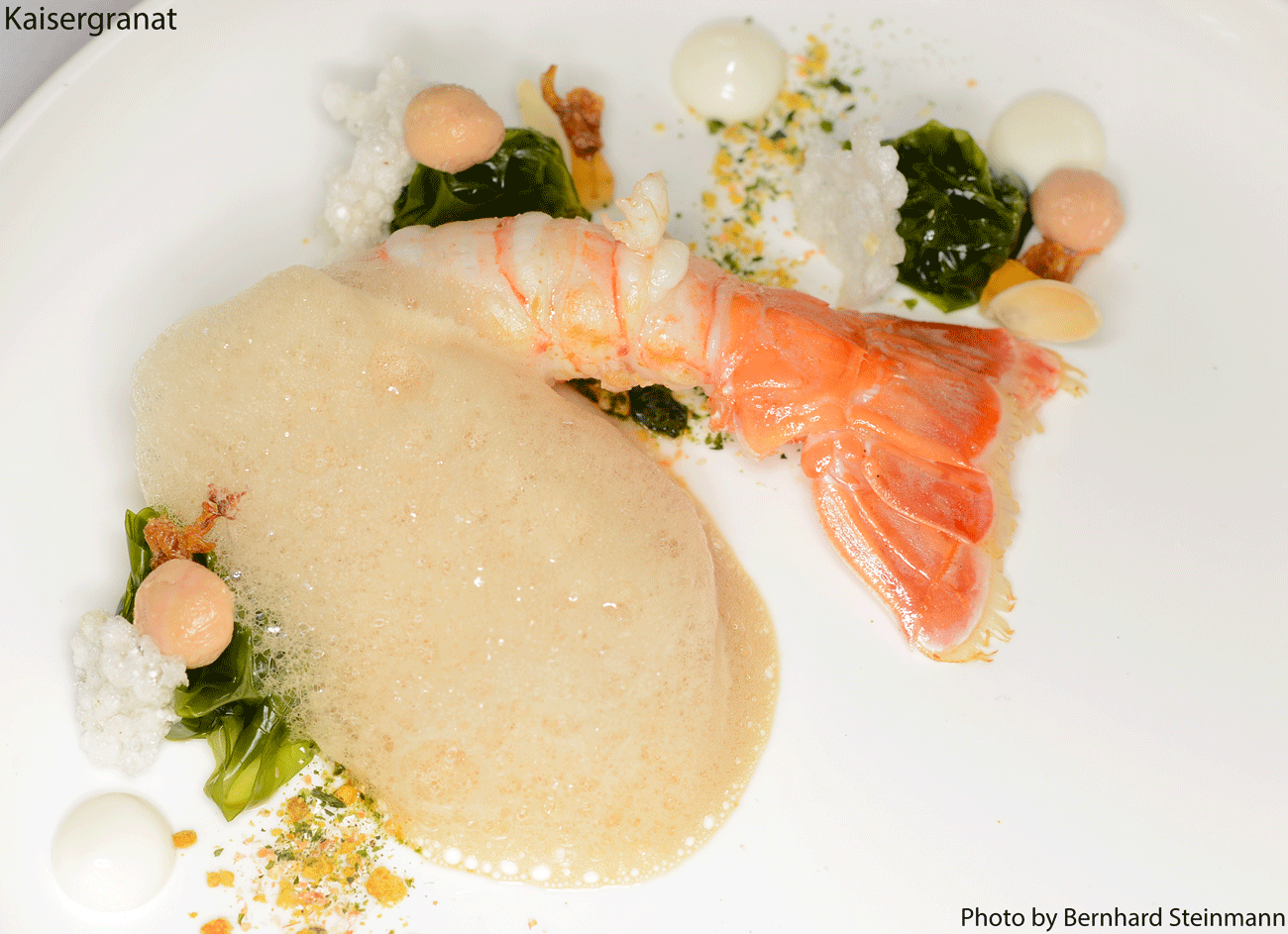 Der wohlschmeckende Kaiserhummer stemmt sich der geschmacksintensiven Stopfleber entgegen. Trotz quantitativer Unterlegenheit dominiert die cremige Beilage das Gericht.