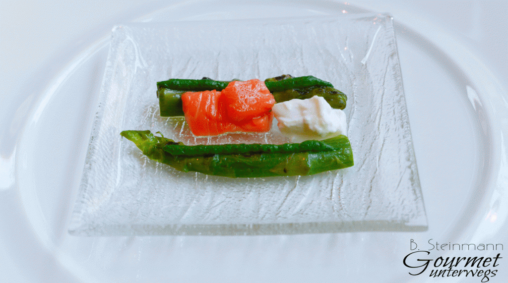 Das habe ich bereits 2011 geschrieben. Dem ist im Jahr 2017 eigentlich nicht viel hinzuzufügen. Die französische Haute Cuisine ist typisch für das Fischers Fritz und Christian Lohse, deshalb sind wir schließlich hier. Lohse war Auszubildender im Restaurant „Jean Pierre Billoux“ in Dijon und u.a. im Zwei-Sterne-Restaurant „Charles Barrier“ in Tours sowie im „Guy Savoy“ (drei Michelinsterne) in Paris tätig. Das hat ihn anscheinend nachhaltig geprägt.