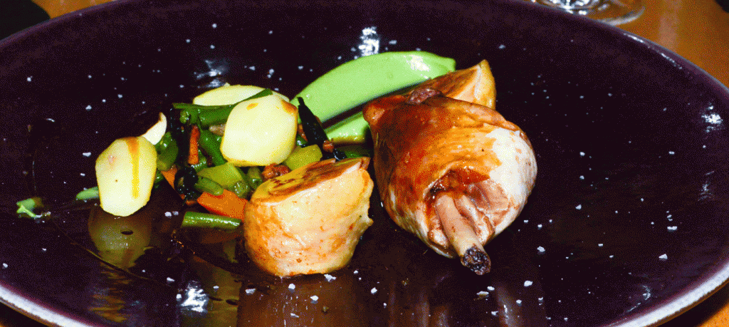 Wunderbar zartes Huhn mit schmackhaftem Gemüse. Typisch Emmanuel Renaut.