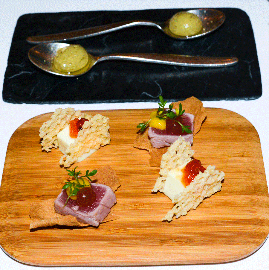Schnell wenden wir uns nun den weiteren Amuse bouches zu, die allesamt handwerklich gut geraten sind und geschmacklich durchaus beeindrucken.