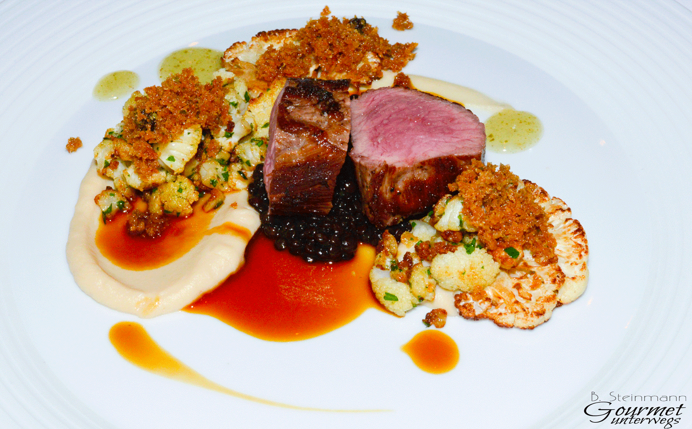 Ostalb Lamm, Blumenkohl, Beluga Linsen, grüner Pfeffer