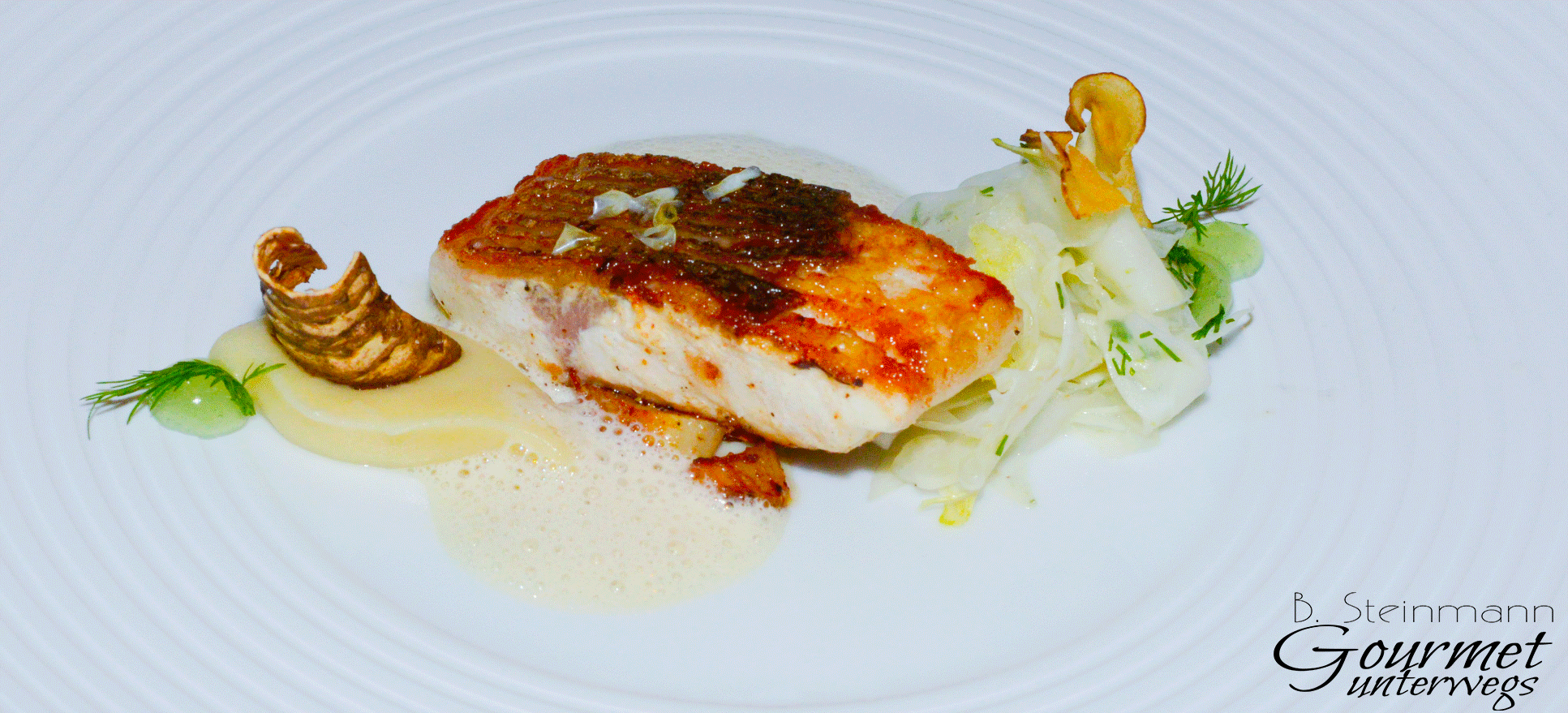 Loup de Mer, Topinambur, Fenchelsalat, Meerrettich, Dill