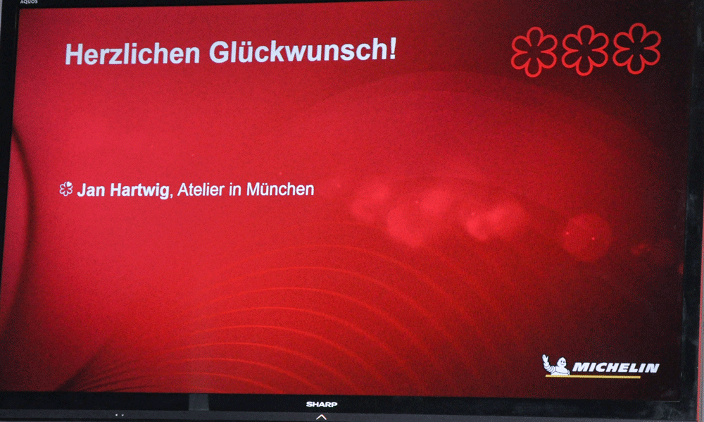Erstmals wurde das Restaurant „Atelier“ in München unter der Leitung von Küchenchef Jan Hartwig von den Testern des Guide Michelin mit drei Sternen ausgezeichnet. Der gebürtige Niedersachse übernahm 2014 die Küche des „Atelier“ im Hotel „Bayerischer Hof“, das damals mit einem Stern ausgezeichnet war. 2016 folgte der zweite Stern und nun bereits der dritte Stern.