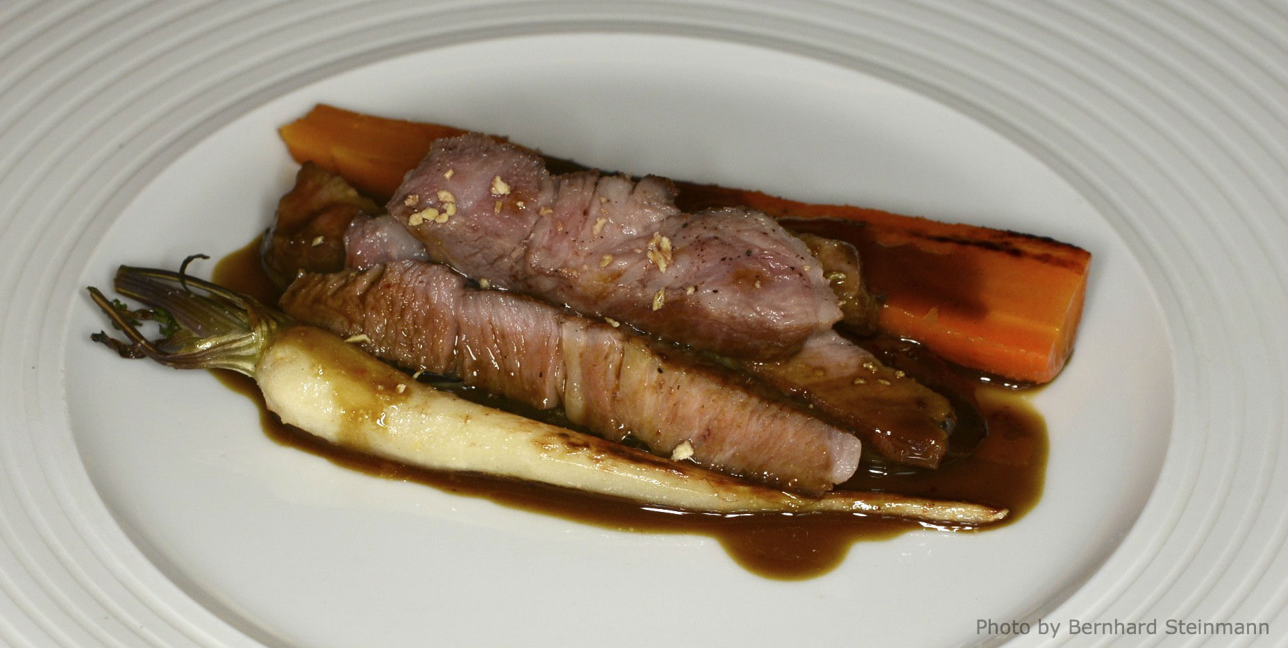 Schweinenacken, Möhre, Kürbiskernjus