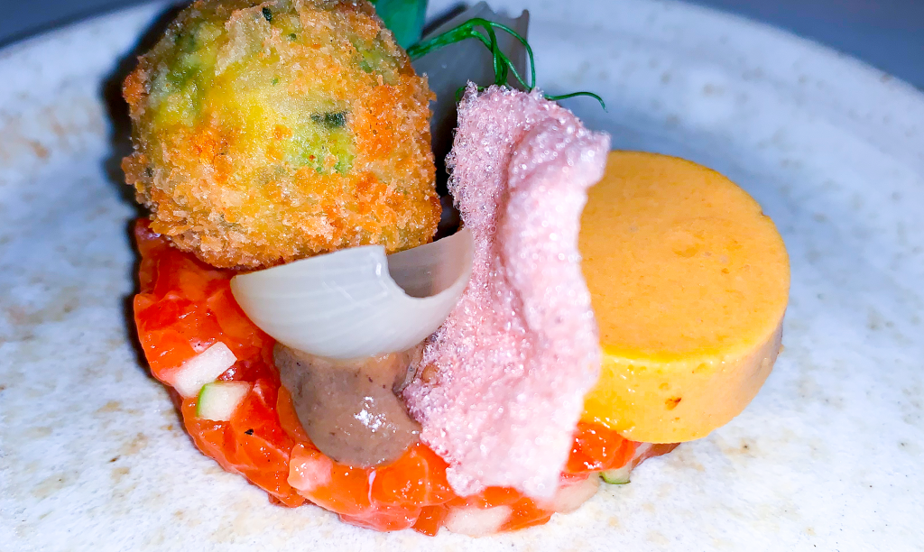Ein leichtes Gericht zum Start. Das ausgebackene Gemüsebällchen ist gefällig, gut im Geschmack. Insgesamt ist das Gericht eher zurückhaltend, subtil gestaltet und eingängig.