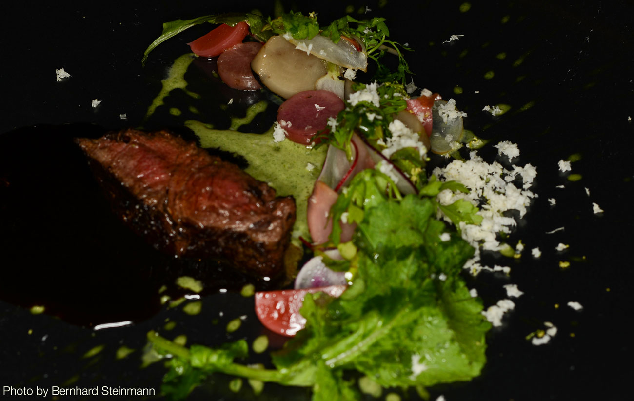 Julien Roucheteau liebt es anscheinend, auf schwarzen Tellern anzurichten. Für den Fotografen nicht immer die beste Wahl.