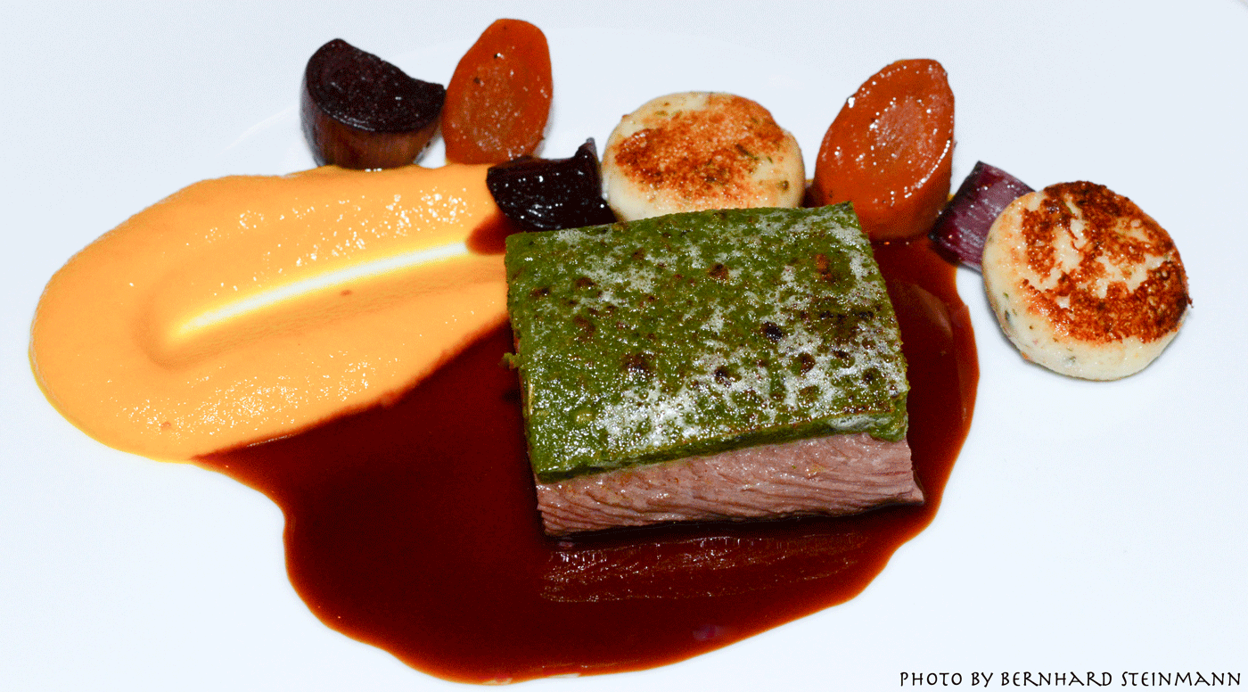 Lamm und Ziegenkäse gefallen uns durch das intensive Zusammenspiel. Großartig.
