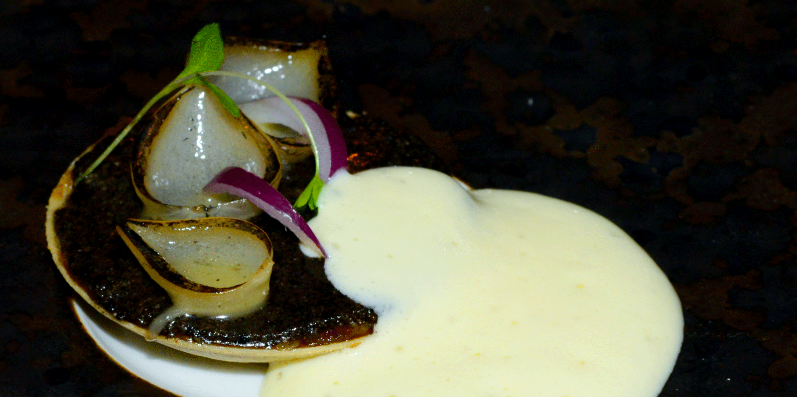 Zwiebeln, leicht angegrillt oder als Creme, werden mit einer leichten und süßen Zwiebelsauce serviert. Ein tolles Gericht.