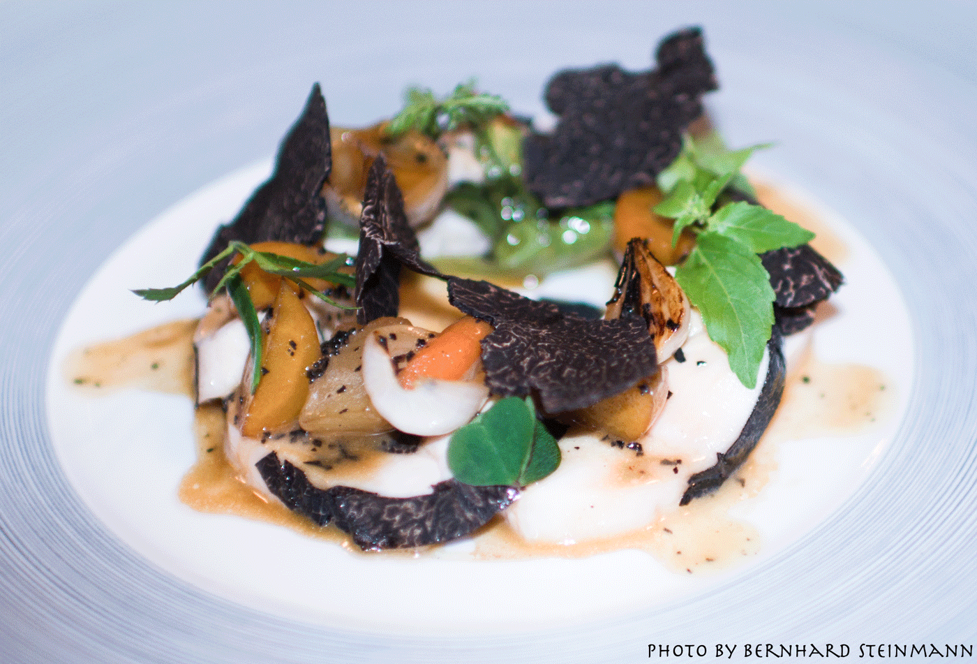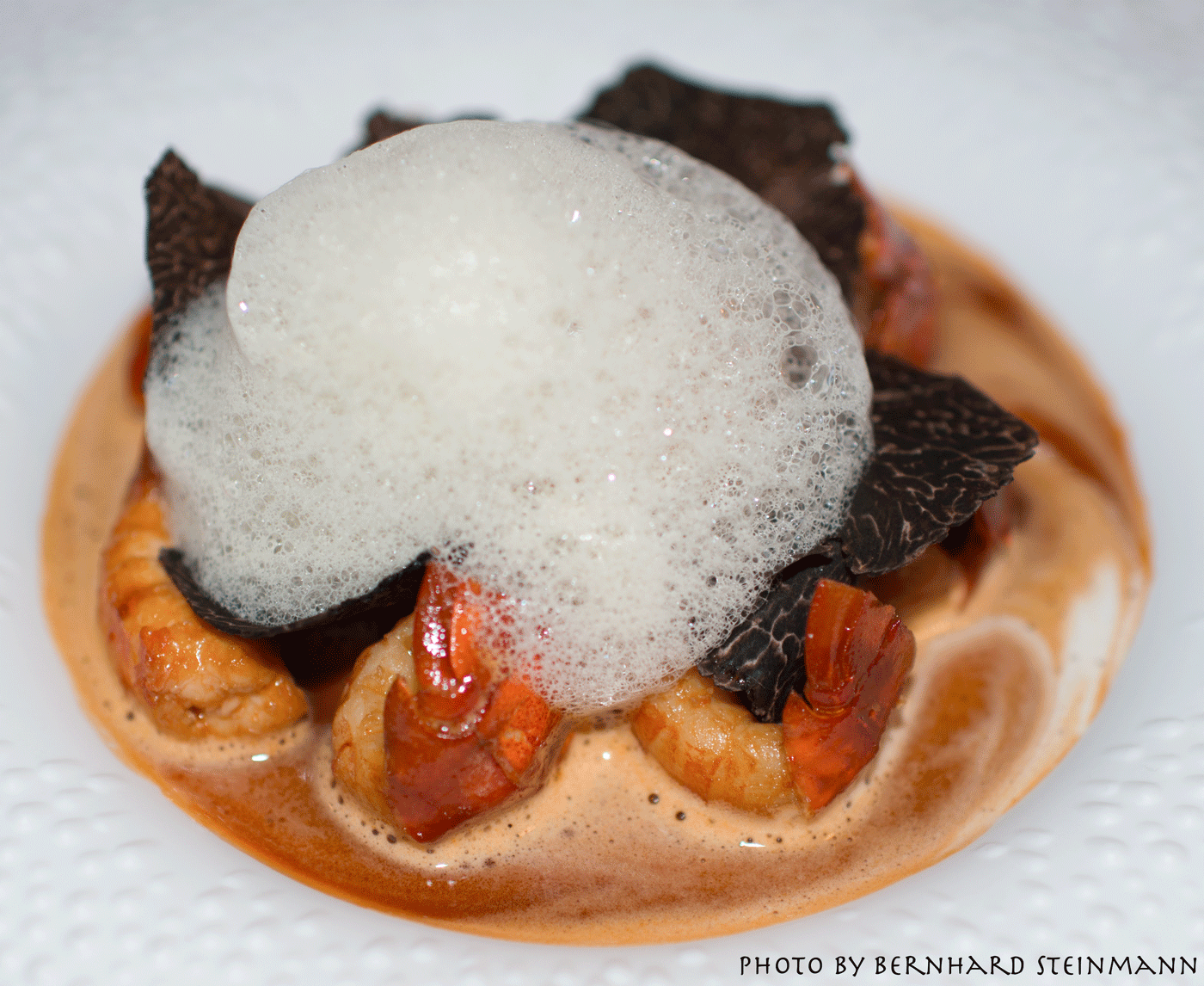 Ein Signature dish. Piège zaubert eine ungewöhnlich leichte Version dieses an Zutaten wahrlich reichen Gerichtes. Die von Tendrot, einem Neffen von Jean Anthelme Brillat-Savarin, Rechtsanwalt und Gastronom, verwendeten Zutaten ergänzt er mit australischem Trüffel. Geflügelleber und Krebsschwänze stehen ebenso im Vordergrund wie der schmackhafte Sud. Davon hätte es gerne noch etwas mehr sein können.