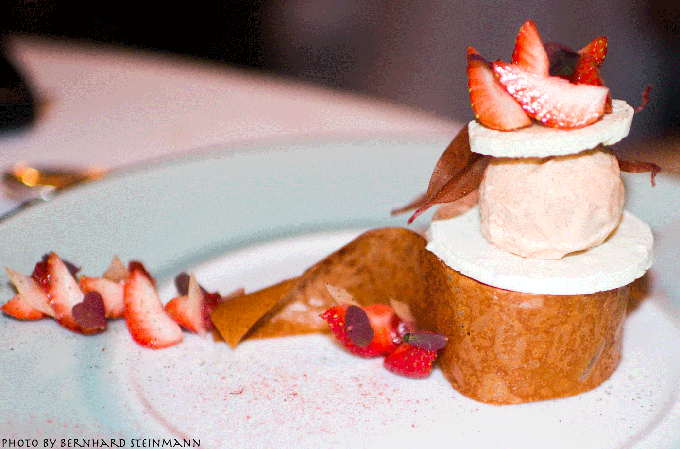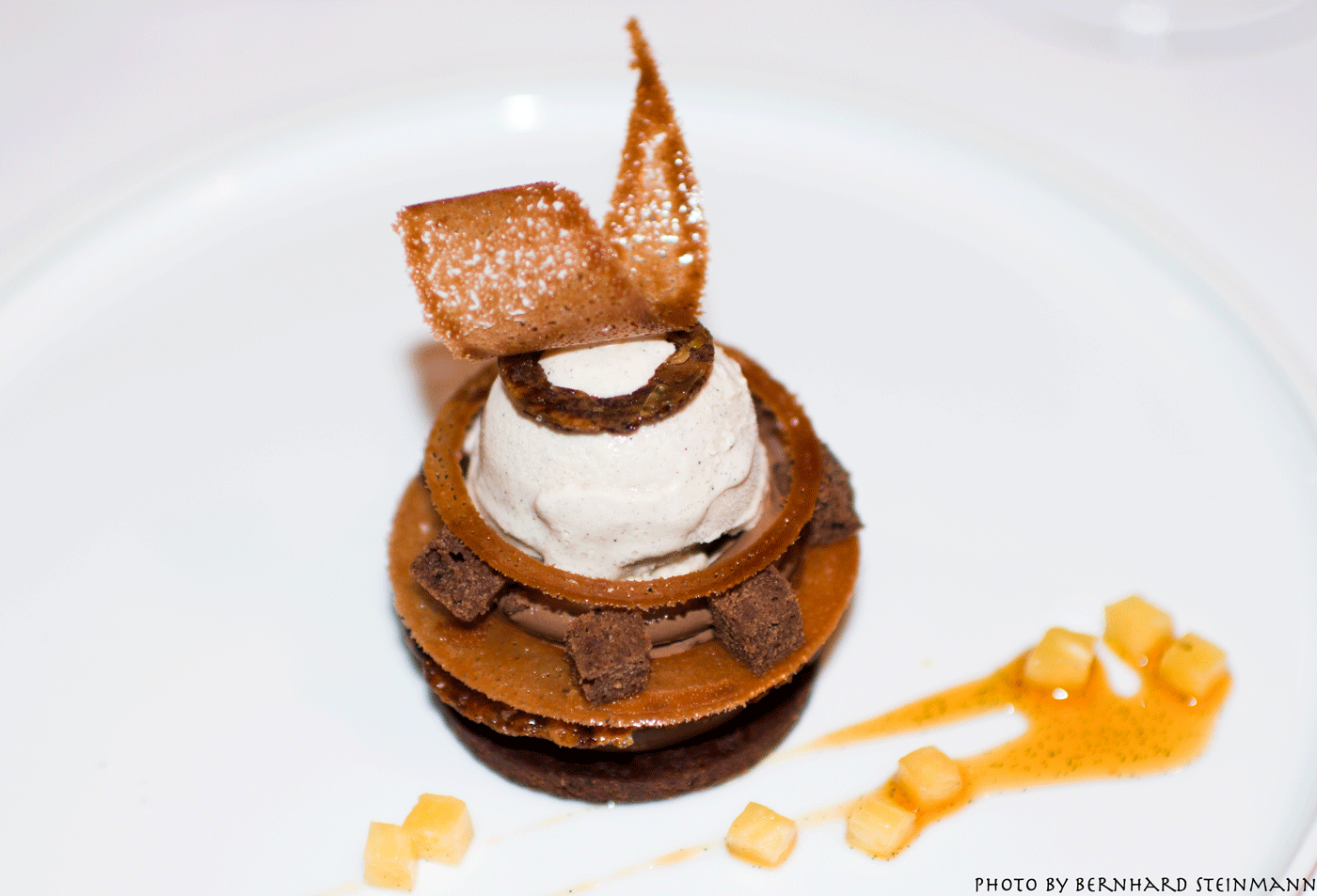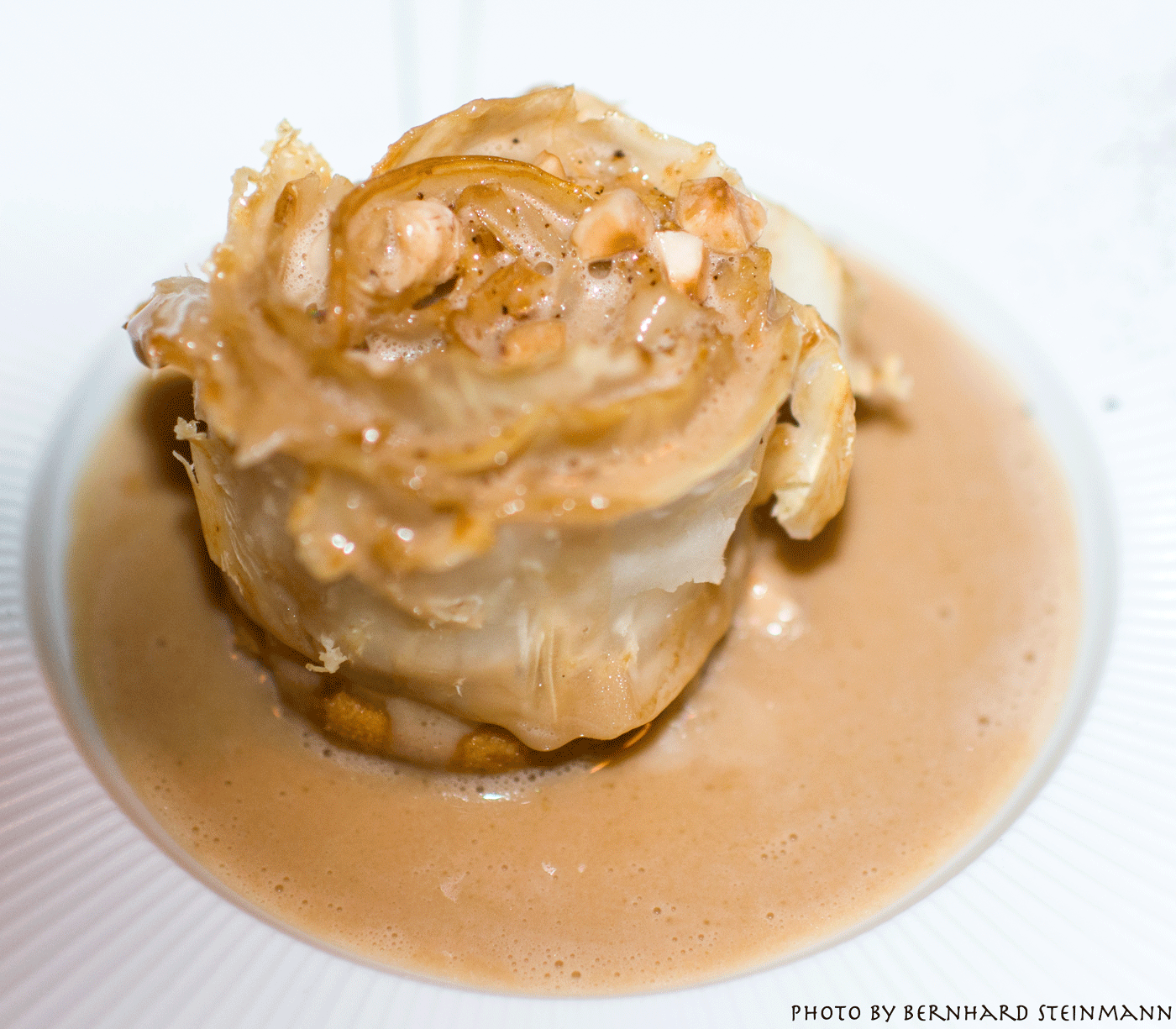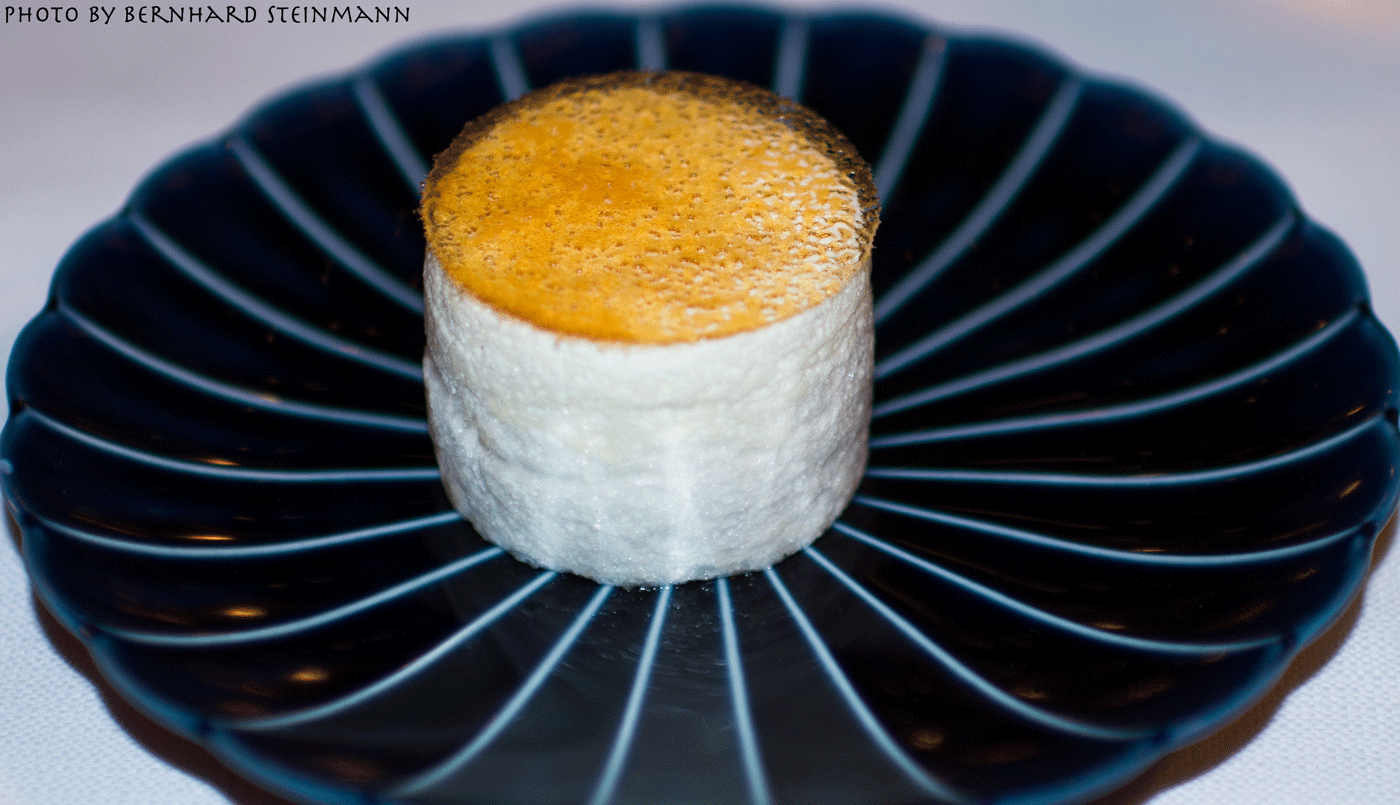 Von Auguste Escoffier soll es ein vortreffliches Mandelsulz-Rezept geben. Immerhin ist die Speise seit dem Mittelalter in Europa bekannt. Die Interpretation von Piège ist jedenfalls prächtig gelungen. Der hauchdünne Karamelldeckel verleiht dem Gericht einen Touch von Crème brûlée.