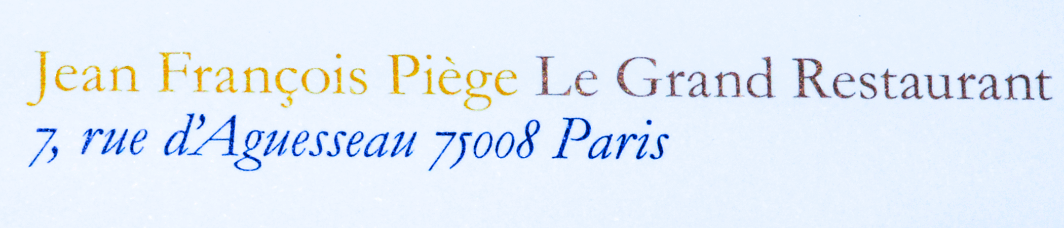 Der Zugang zur Küche von Jean-François Piège ist komplikationslos. Die lange und enge Zusammenarbeit mit Ducasse hat ihn zwar geprägt, dennoch ist seine Handschrift klar erkennbar. Die Aufgeschlossenheit gegenüber neuen Techniken, die Verbindung von Tradition und Moderne, vor allen Dingen jedoch eine herausragende Produktqualität, gepaart mit Kreativität und gekonntem Handwerk, bilden die Grundlagen für einen kulinarisch äußerst zufriedenstellenden Abend.