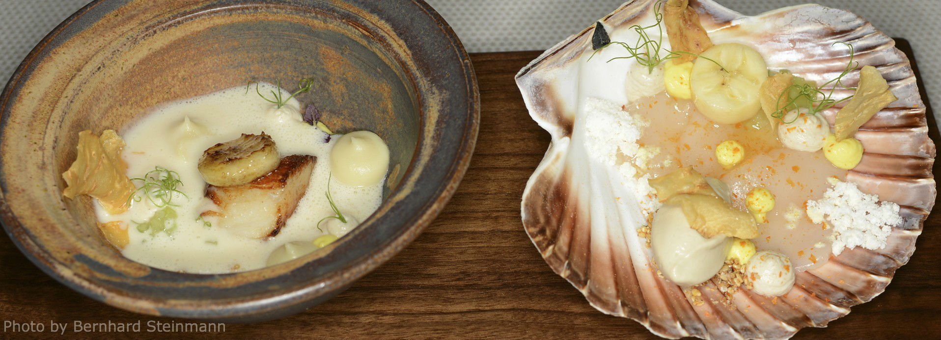 Aus meiner Sicht bleibt es eine gewagte Kombination. Wohlwissend, dass die Idee so neu nicht ist. An Jakobsmuschel mit Banane haben sich schon viele versucht. Meinen Beifall spare ich mir für andere Gerichte auf.