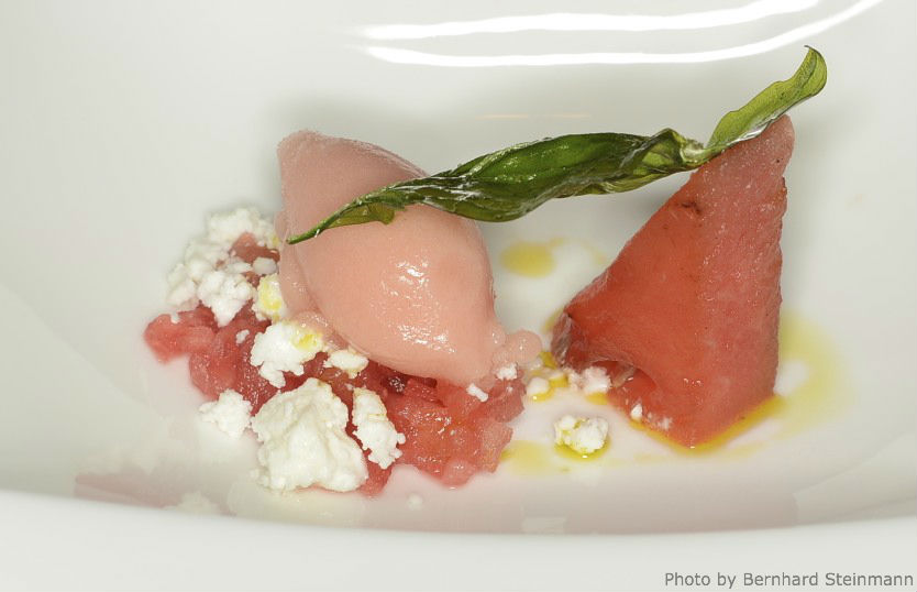 Leicht, mit Olivenöl verfeinert, startet das Menü süß, kalt und fruchtig.