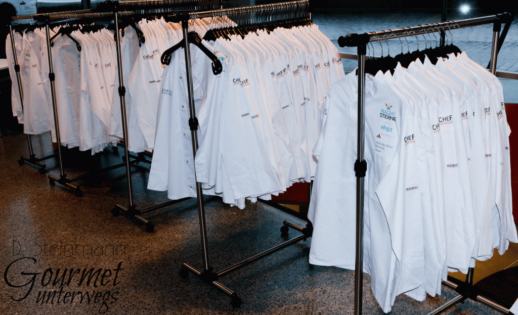 Vor die Ankunft der Köche ist bereits alles vorbereitet. Die Kochjacken warten auf ihre neuen Träger.