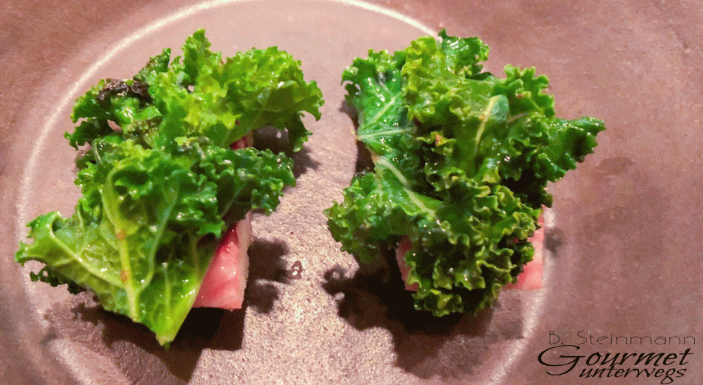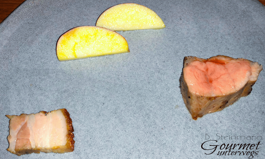 Ein Menü, saisonal und regional ausgerichtet. Die Qual der Wahl, wie in vielen Restaurants noch immer üblich, bleibt uns erspart. Das Fotografieren der Speisen wurde mir auf Nachfrage gestattet.