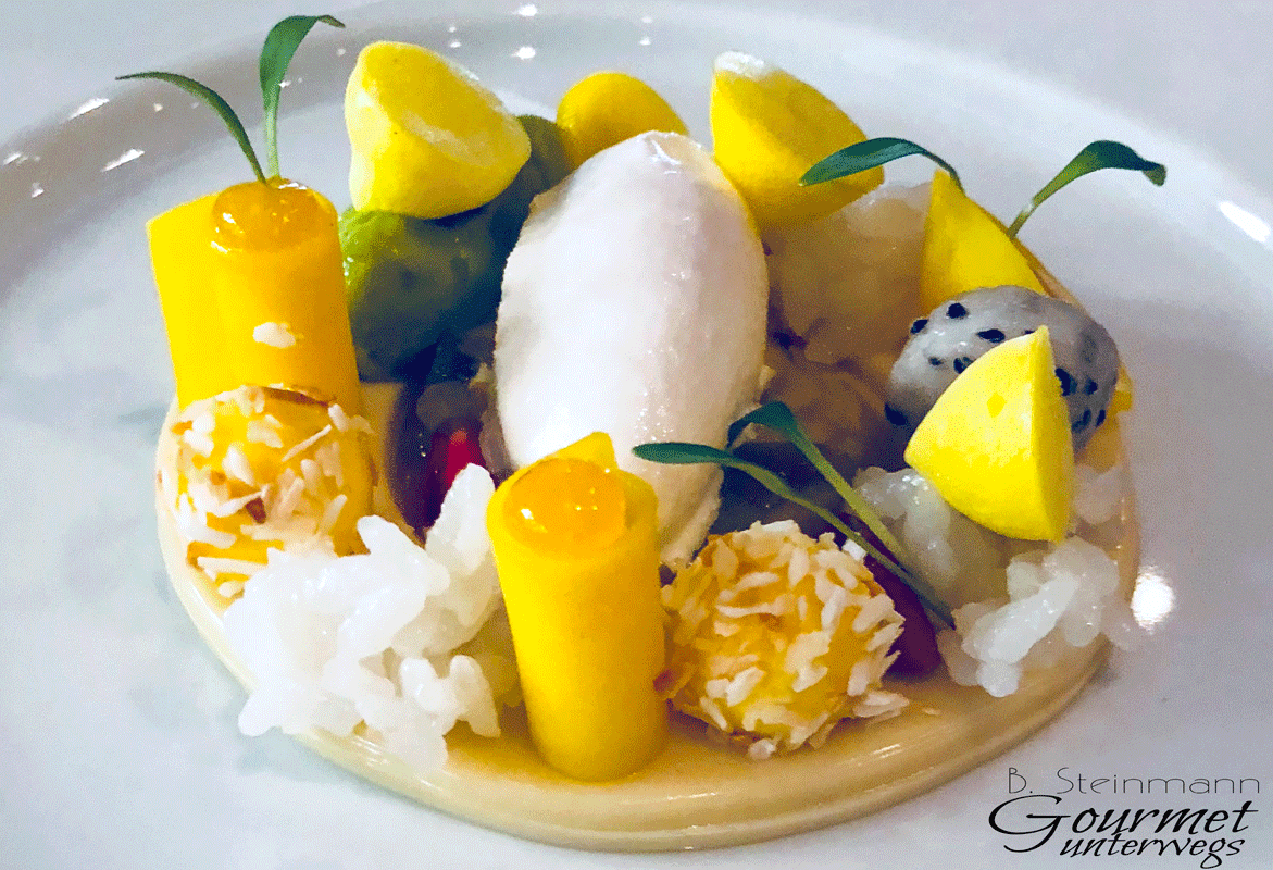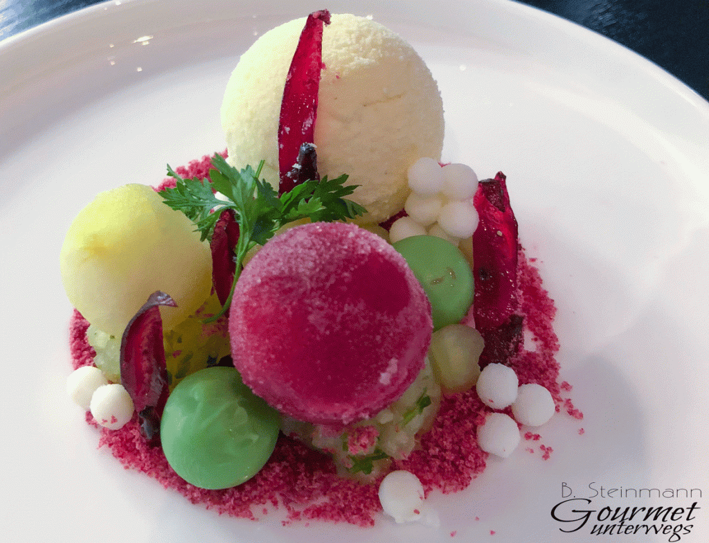 Die Desserts liegen auf dem gleichen hohen Niveau wie die bisher gezeigten Gerichte. Es überzeugt uns vor allem das Wechselspiel von Aggregatzuständen und Aromen.