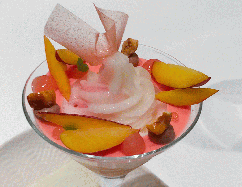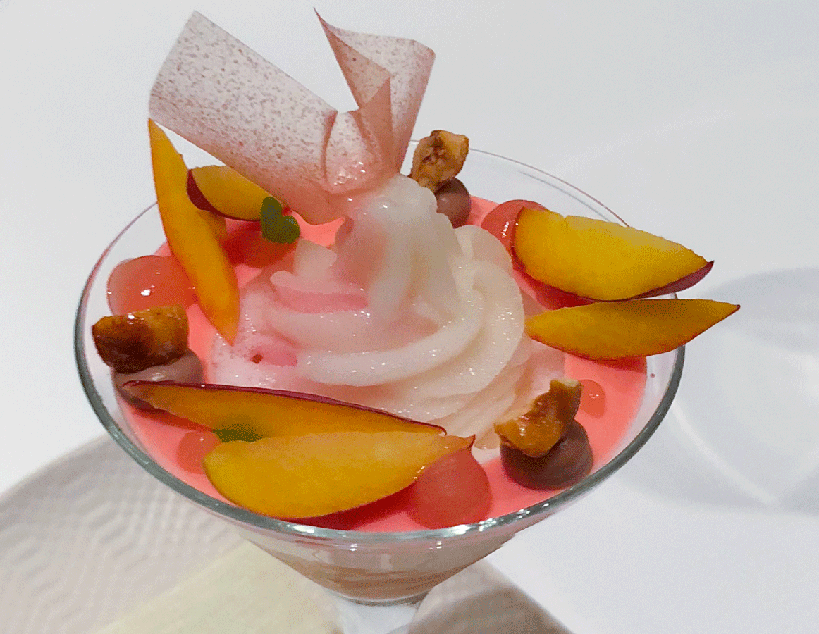 In der letzten Zeit wurden wir häufig mit Lammkreationen verwöhnt. Franck Giovannini hat auch bei diesem Gericht die Nase vorn. Perfekt gegart war der Lammrücken ein echter Genuss. Das begleitende Gemüse steigerte das Aroma noch beträchtlich. Welch ein grandioser Gang.