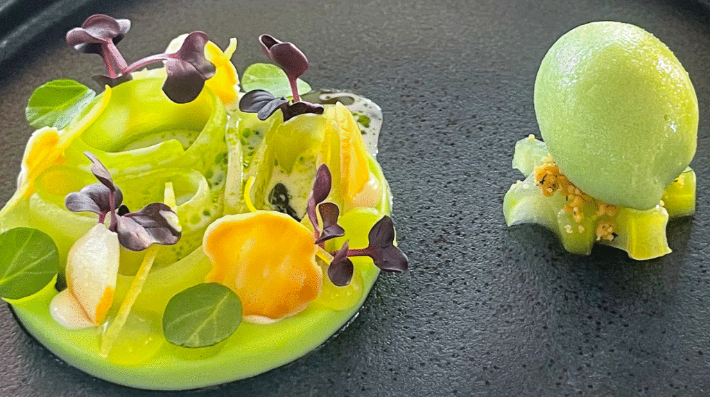 Stachelbeere – Staudensellerie / Haferflocken / Sauerklee