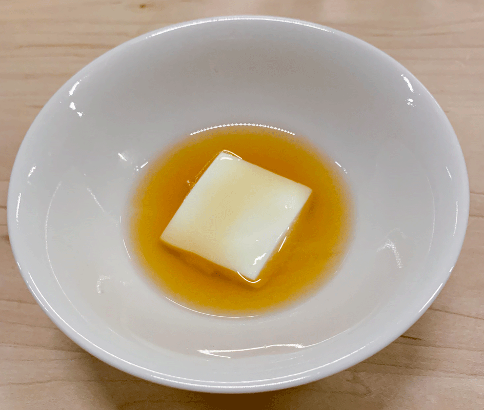 Alle Gänge, soweit man hier von Gängen sprechen kann, stelle ich nicht vor. Wir haben etwa 40 Schälchen verputzt. Da muss eine kleine Auswahl genügen. Am Ende des Menüs wurde eine Menükarte überreicht, die jeweils nur eine Komponente benennt. Das ist wenig hilfreich.