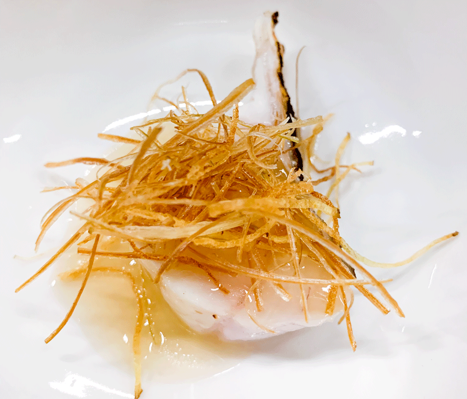 Mehrere Teile des Menüs bestanden aus Kreationen bei denen der Knurrhahn im Mittelpunkt stand. Ohne die chronologische Reihenfolge einzuhalten, möchte ich damit beginnen. Wer es genau wissen möchte, es handelt sich um die Gerichte Nummer 5, 12 und 26.