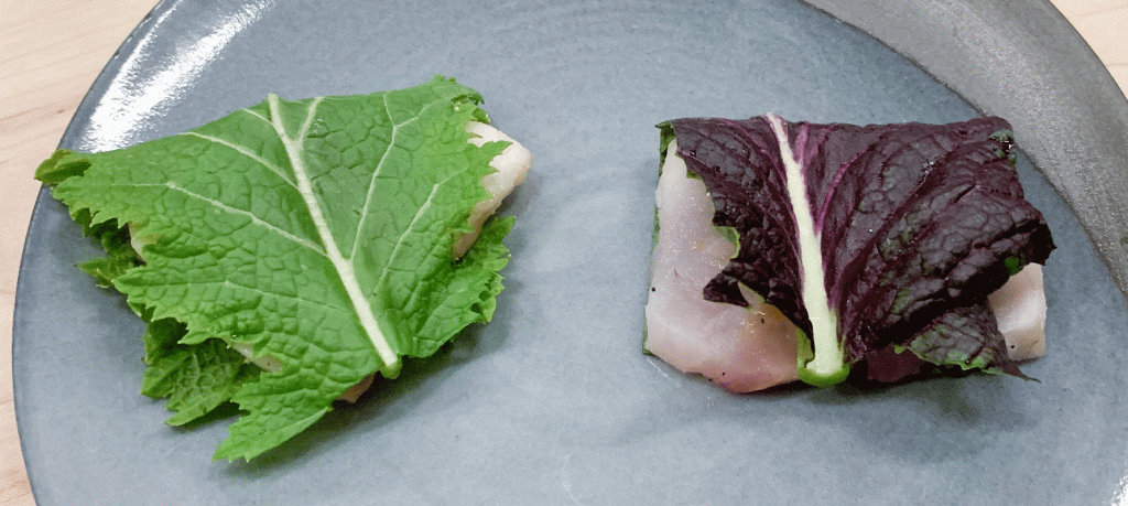 Knurrhahn im Senfkohlblatt, Umabashi.