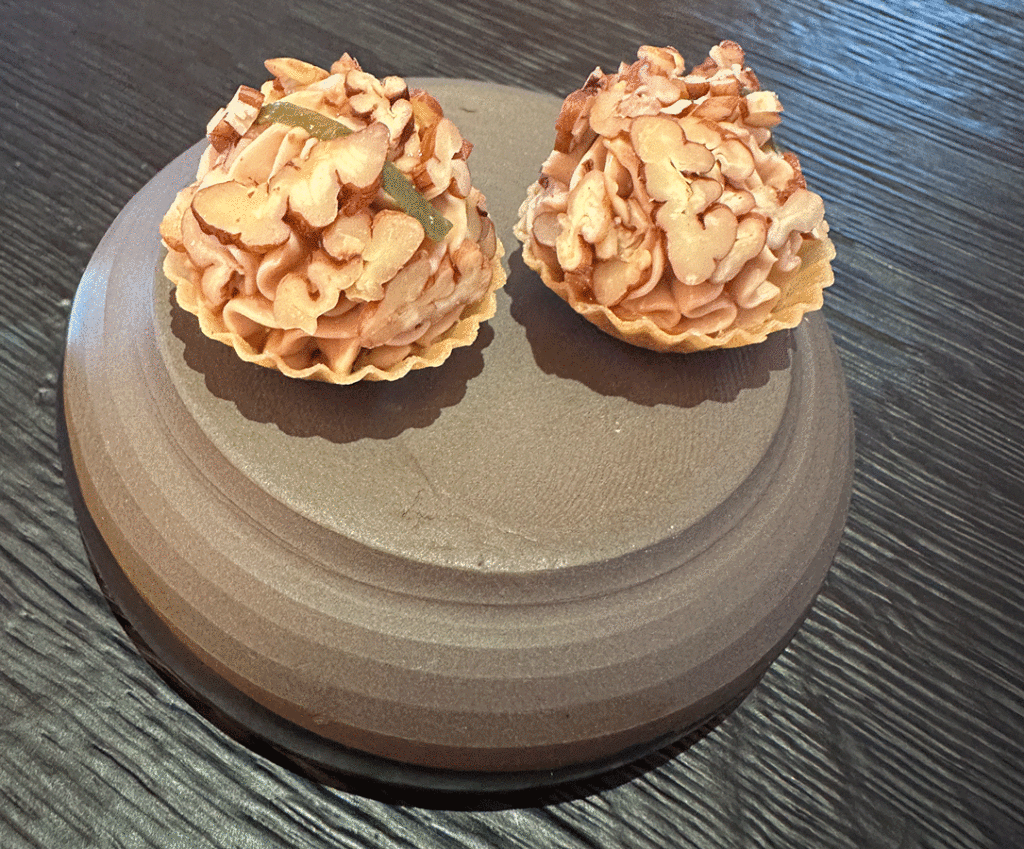 Foie Gras au Chantilly, Krokant, Kaper, Pekanuss, Finger Limes & geräucherter Ahornsirup