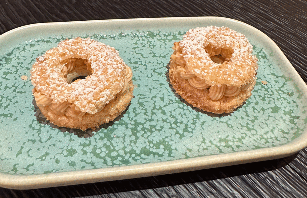 Bei den Petit Fours möchte ich gerne Paris-Brest herausgreifen, welches als Miniatur vor uns liegt.