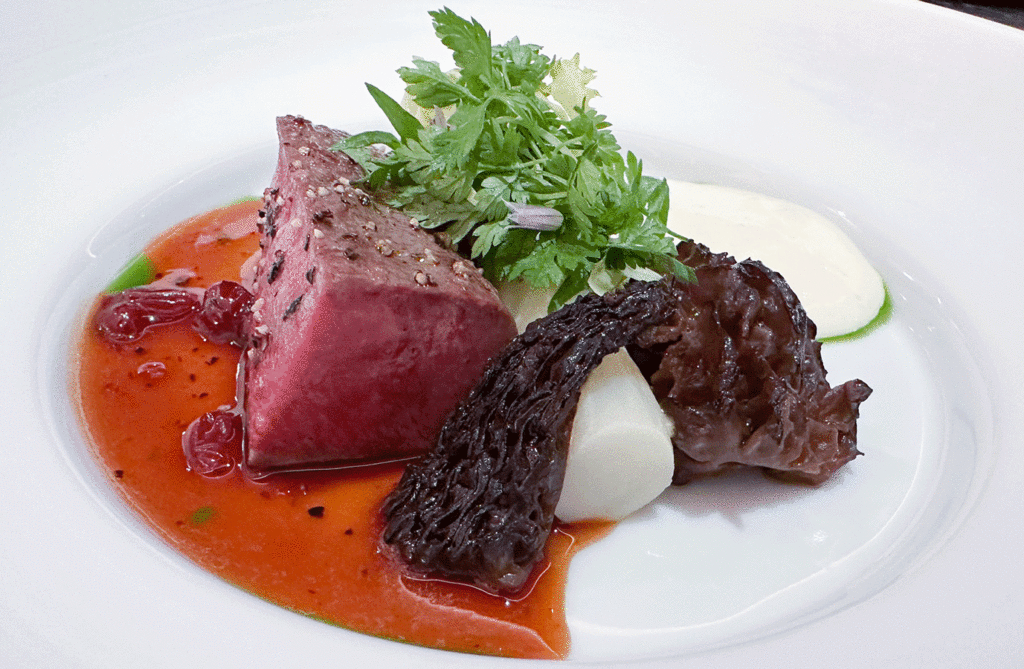 Rehrücken vom Gutshof Polting Spargel, Morcheln, Wacholder, Bärlauch, Parmesan