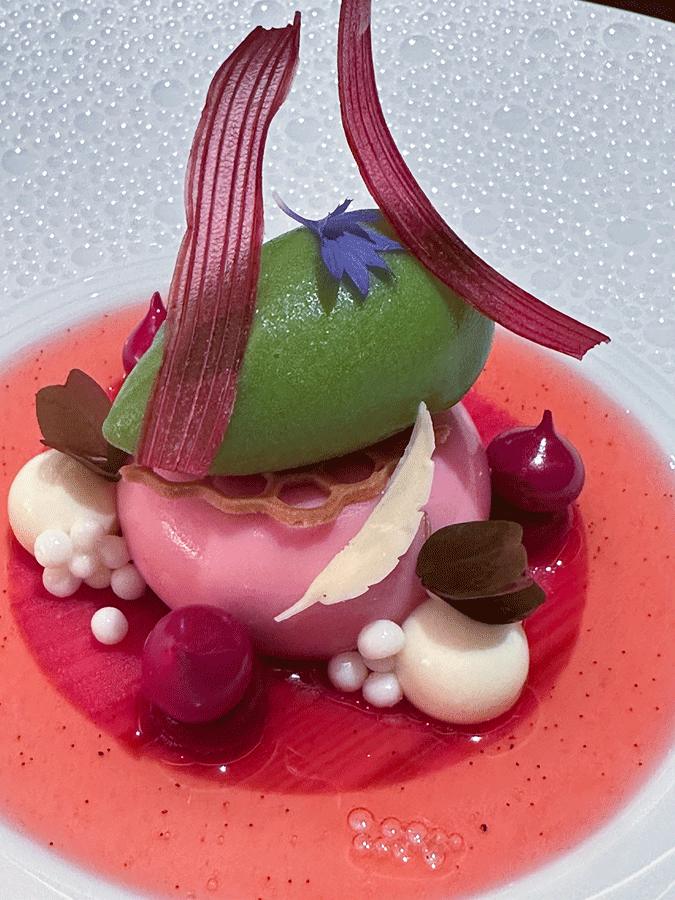 Hartwig kommt in seinem Menü gänzlich ohne luxuriöse Beliebigkeiten und geometrische Arrangements aus. Auch die Ringe aus dem „Atelier“ sind verschwunden. Alles ist unbeschwert leicht und geschmackvoll.