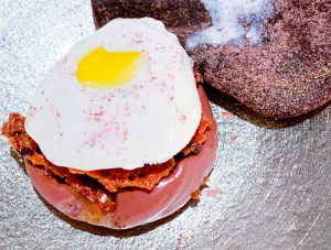 Wieder einmal eine ungewöhnliche Kreation. Sobald das Gericht an die Tische kommt und der erste Bissen genossen wird, durchströmt den Raum eine Welle der Bewunderung, fast der Andacht.