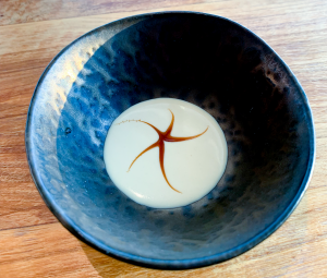 Darauf muss man erst einmal kommen. Ein Ragout von Kakaobohnen zum Tintenfisch. Aber was soll ich sagen, es passt. Wenn auch die Textur der Tintenfischlein gewöhnungsbedürftig erscheint, ist geschmacklich nichts zu beanstanden.