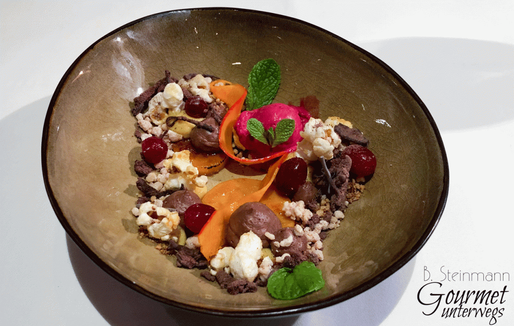 Zarte Säurenoten und ein scharfes Tomatengel waren die Eckpfeiler dieses Gerichts. Die überaus aromatische Kreation hat uns sehr gut gefallen.