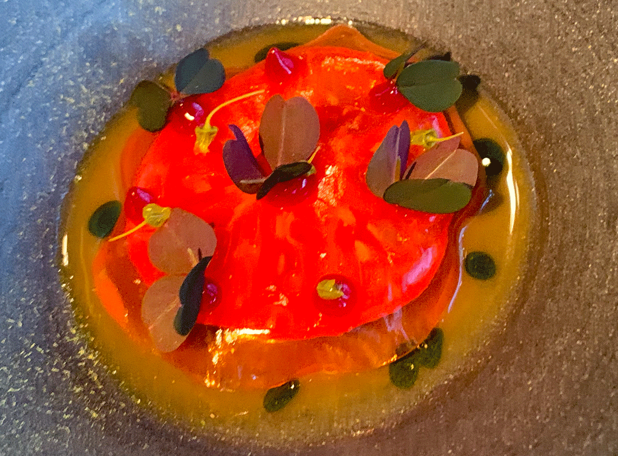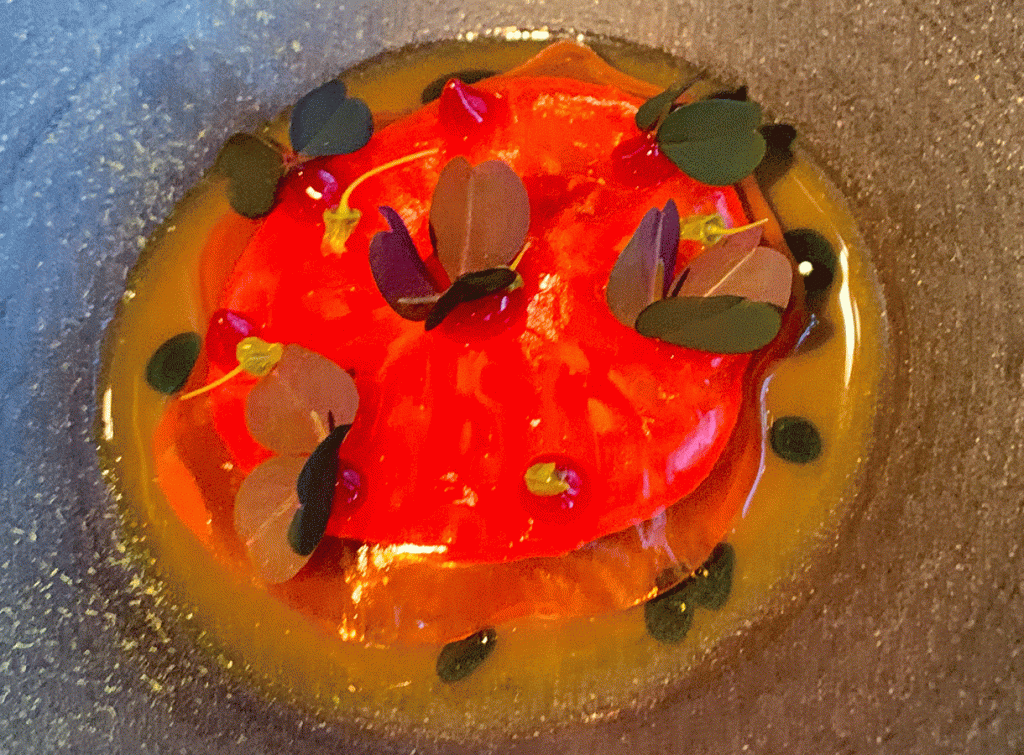 Garum Ochsenherztomate & grüner Wacholder aus der aktuellen Karte.