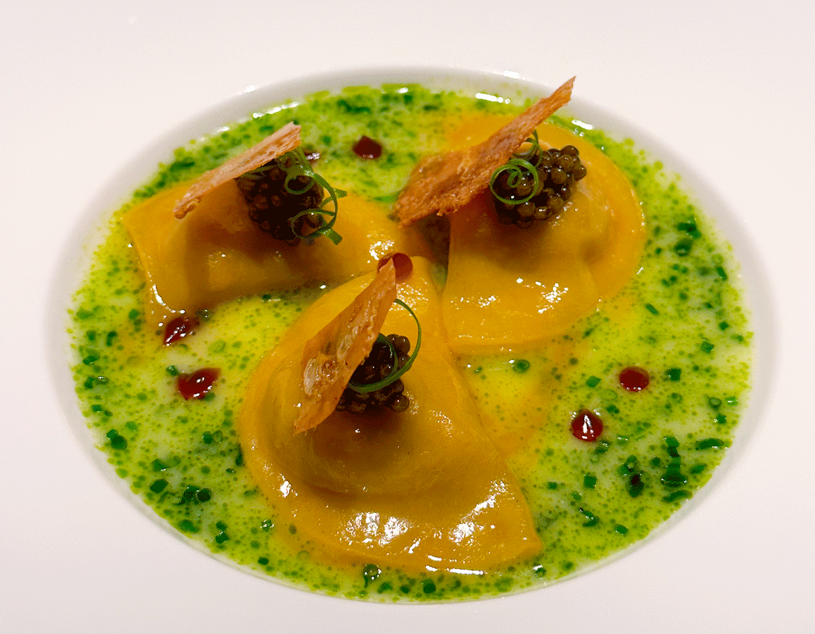 Das Poulet Noir Fermie als Ravioli zuzubereiten, hat mir ausgesprochen gut gefallen. Das Fleisch des Schwarzfederhuhns ist besonders saftig und schmackhaft. Die kreierte Kombination erwies sich als kulinarischer Volltreffer.