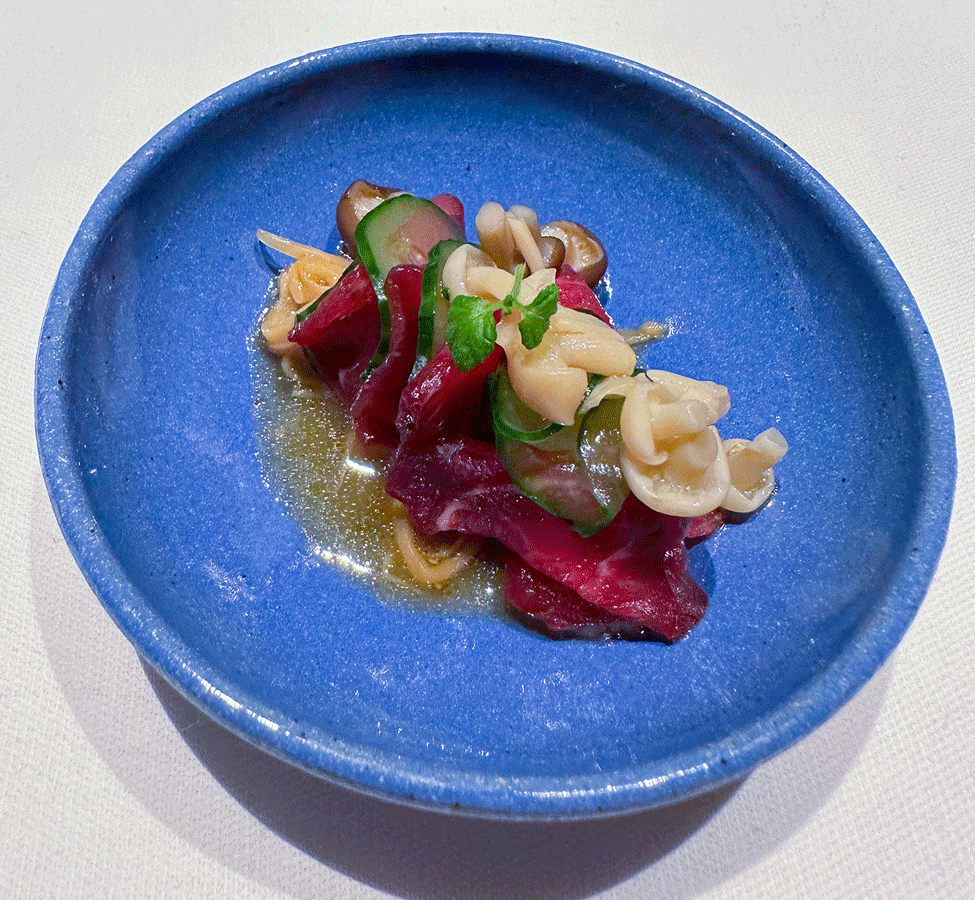 Darin befand sich etwas Wagyu mit Buchenpilzen, Shiitake und Ingwer.