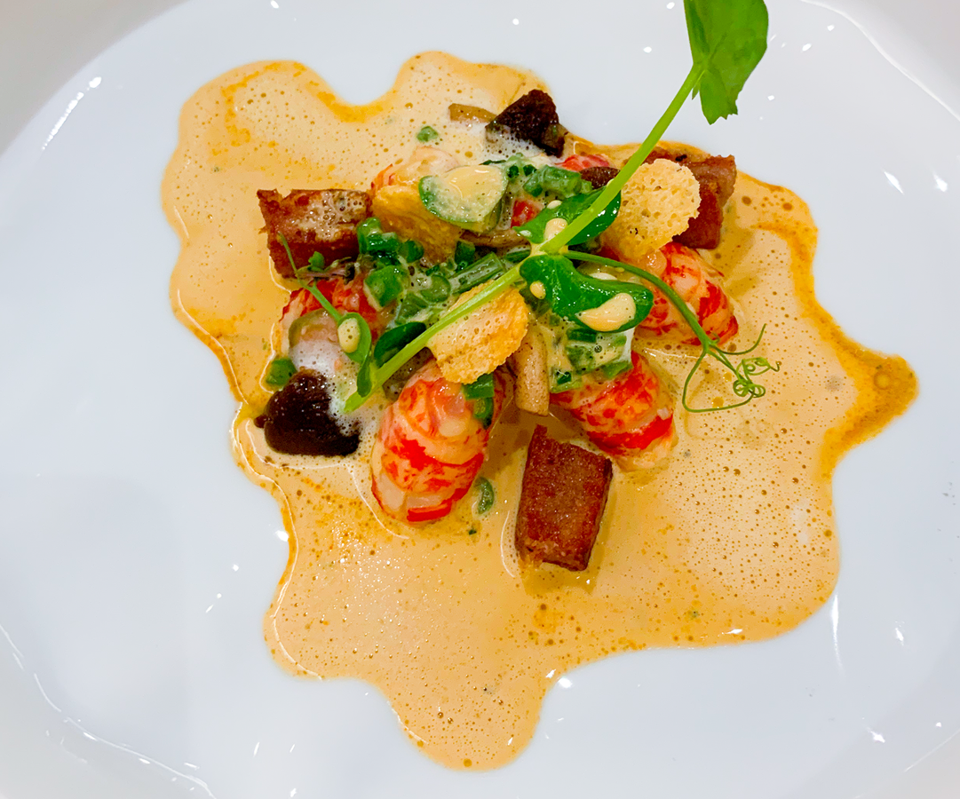 Flusskrebse mit knusprigem Kalbskopf
