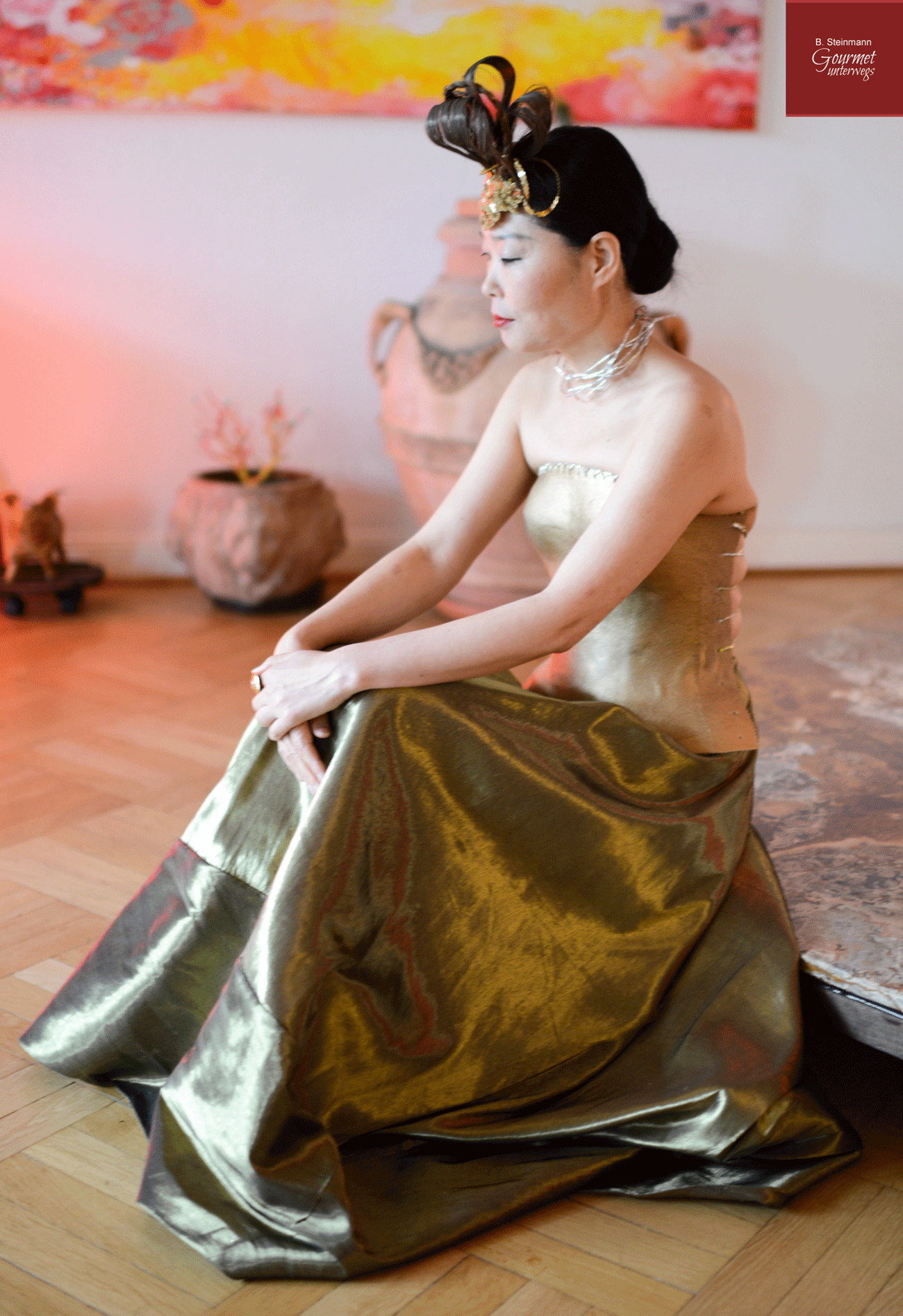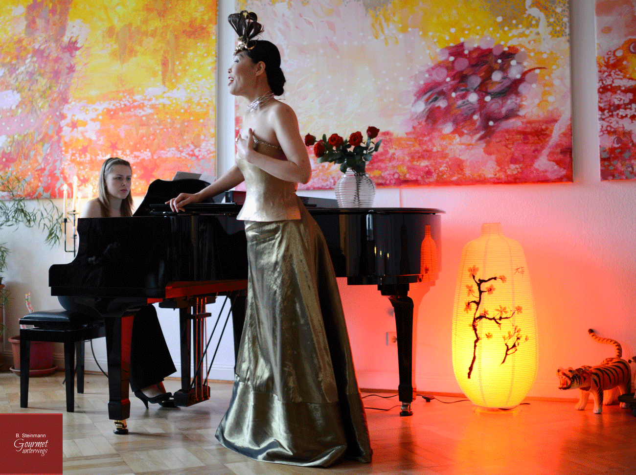 Heute durfte ich koreanisches Essen genießen. Zubereitet von, wie sich herausstellte, einer ausgezeichneten Köchin: Moon Suk. Doch ist die Dame vieles. Nicht nur Köchin, die mit spürbarer Freude ihre Gäste bewirtet, sie ist Dichterin, Schauspielerin, Moderatorin, Künstlerin und, darum geht es ganz besonders heute, eine hervorragende Sopranistin.