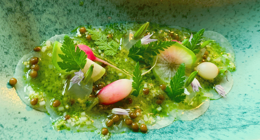 Bei dem Gedanken an vegetarische Menüs in der Spitzengastronomie fällt mir sofort Nils Henkel ein. Die Tatsache, dass im Restaurant Schwarzenstein Gäste, die überwiegend zu Fleisch- und Fischspezialitäten neigen, ein vegetarisches Menü ordern, sagt über die Qualität der Küche in diesem Bereich nahezu alles aus.