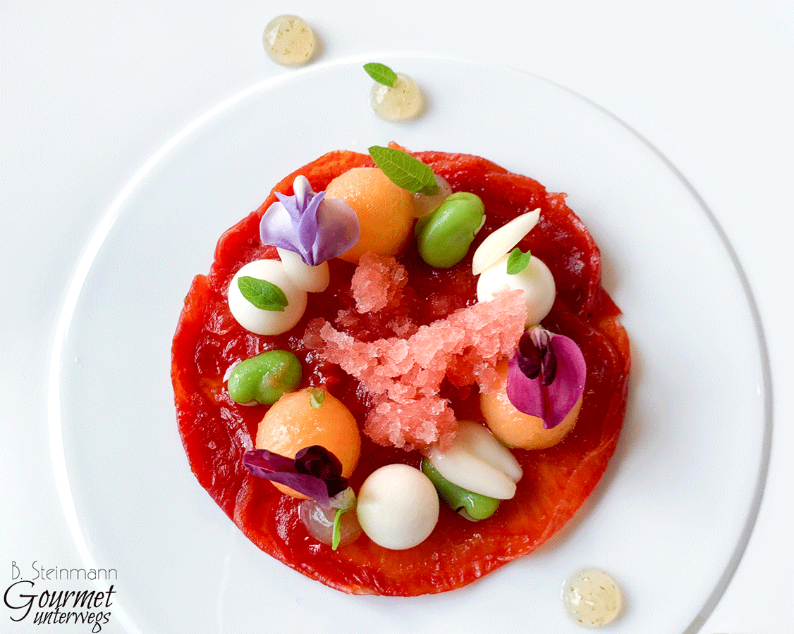Es ist nun kein Geheimnis, dass Henkel gerne ein Produkt in verschiedenen Varianten auf den Teller bringt. Bei dem vorliegenden Gericht sehen wir die Melone u.a. als Granité.