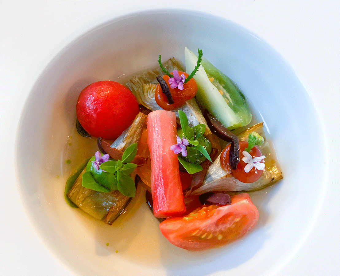 Sommertomaten, Artischocken, Oliven, Basilikum